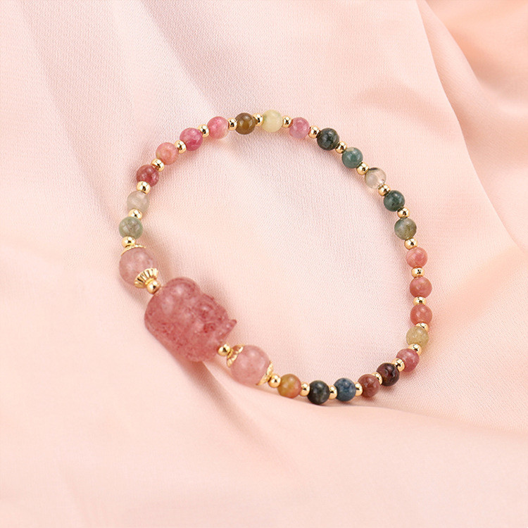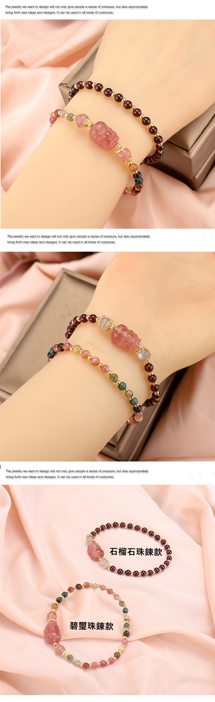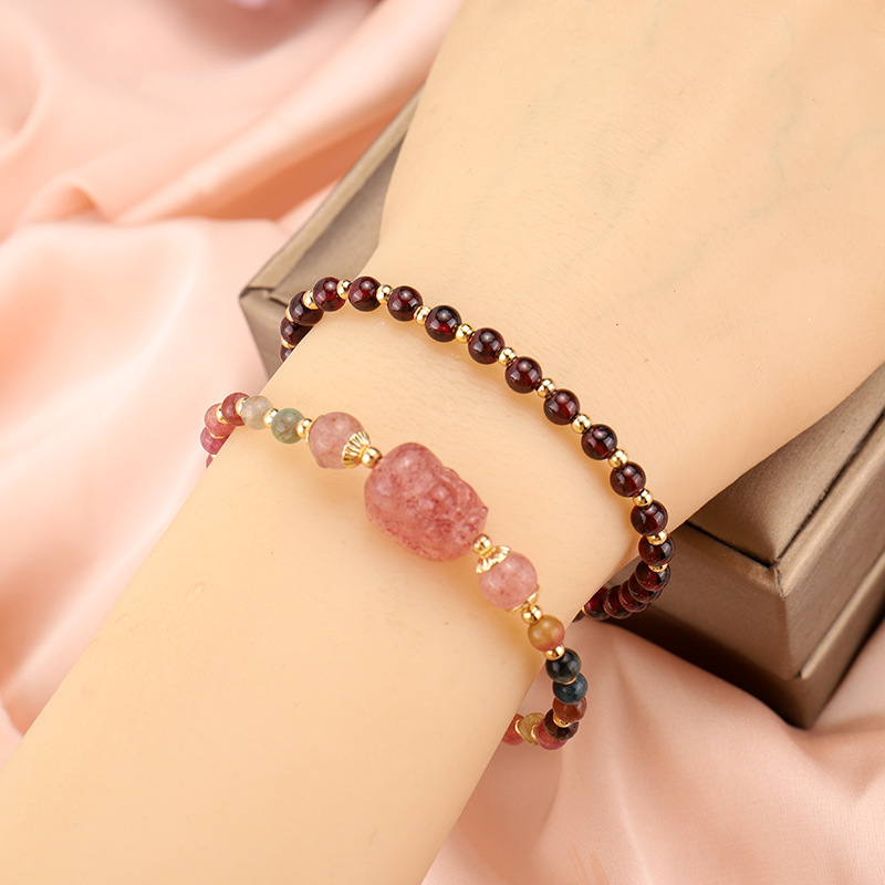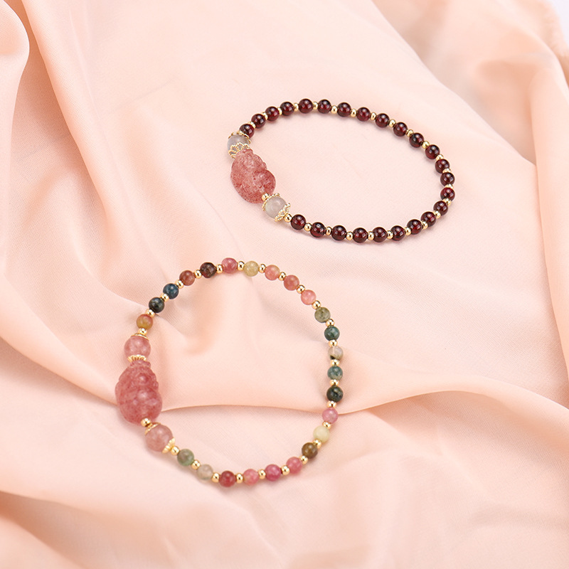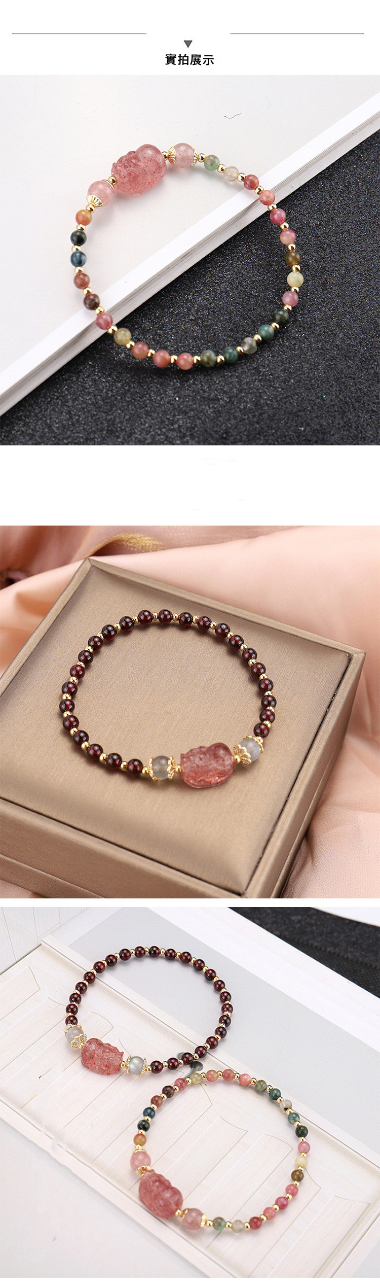 【粉紅招財能量發射】【草莓晶貔貅】【碧璽*石榴石珠鍊】氣質優雅可愛天然草莓晶貔貅配碧璽*石榴石珠女手鍊手串