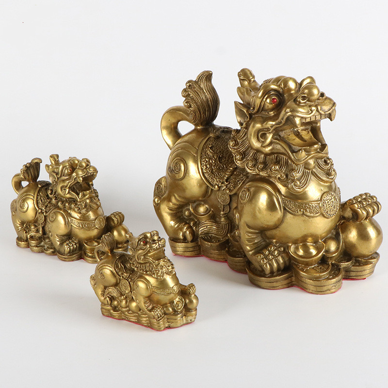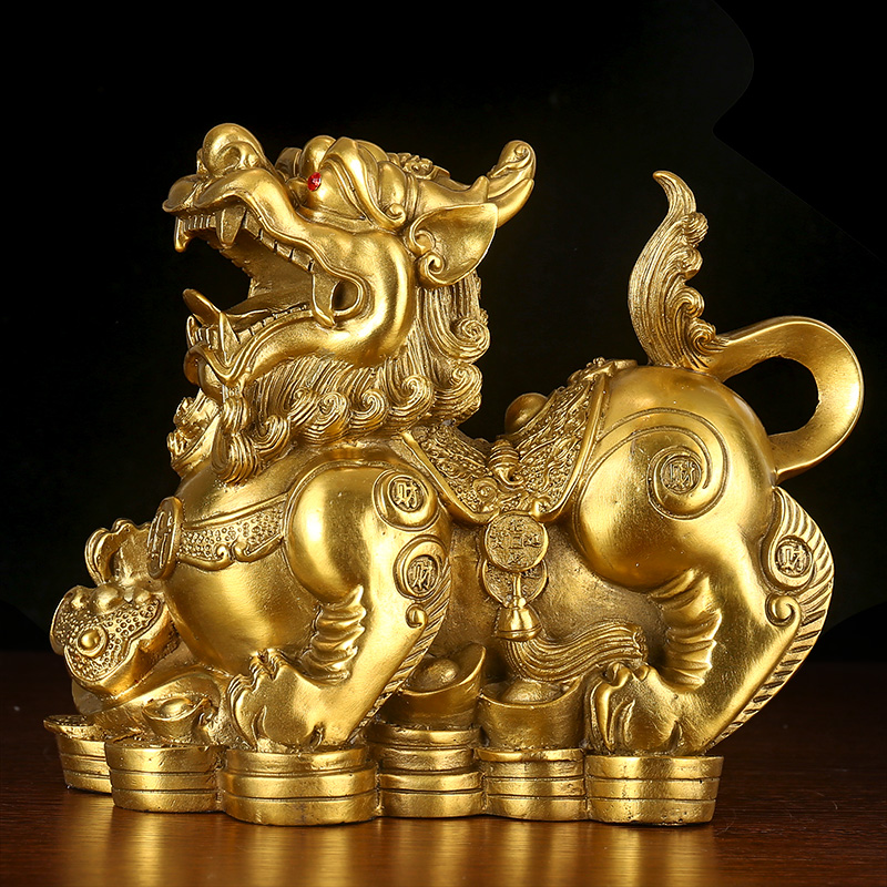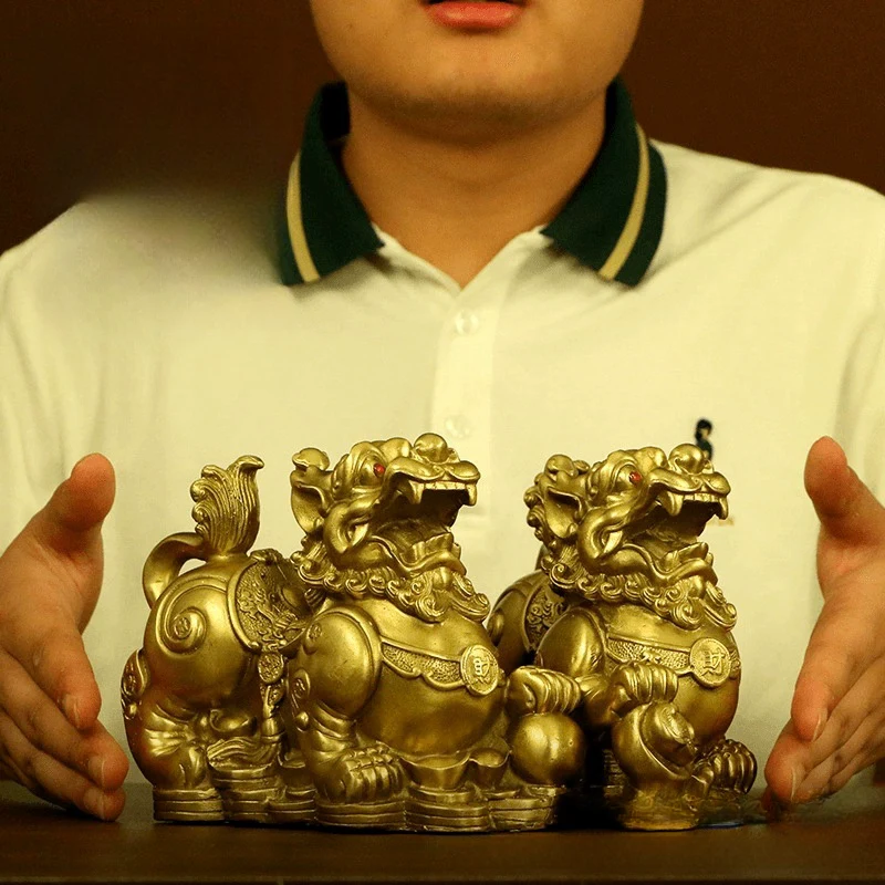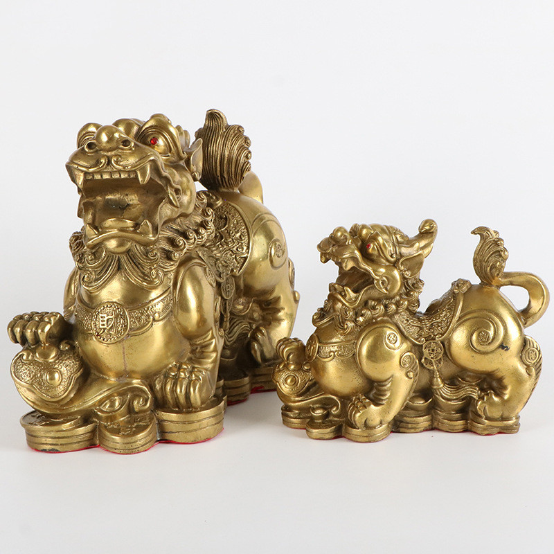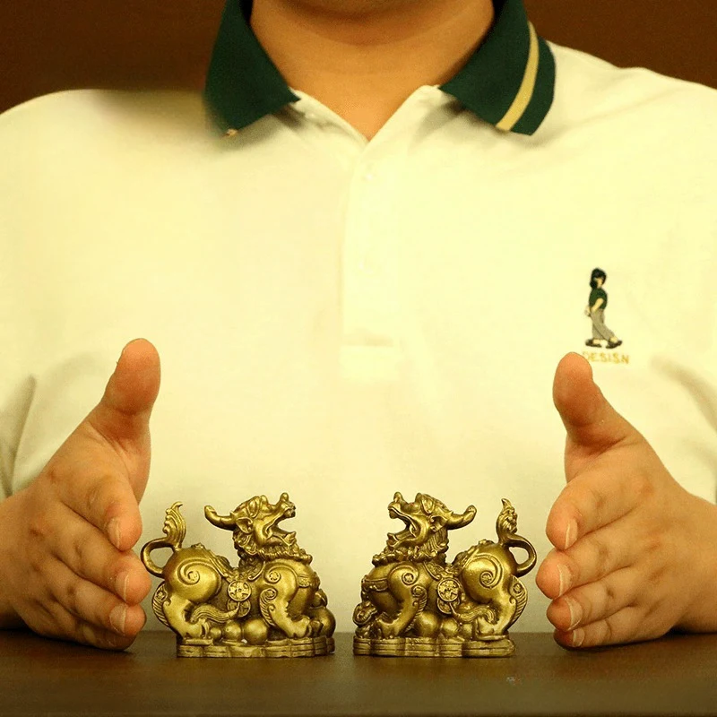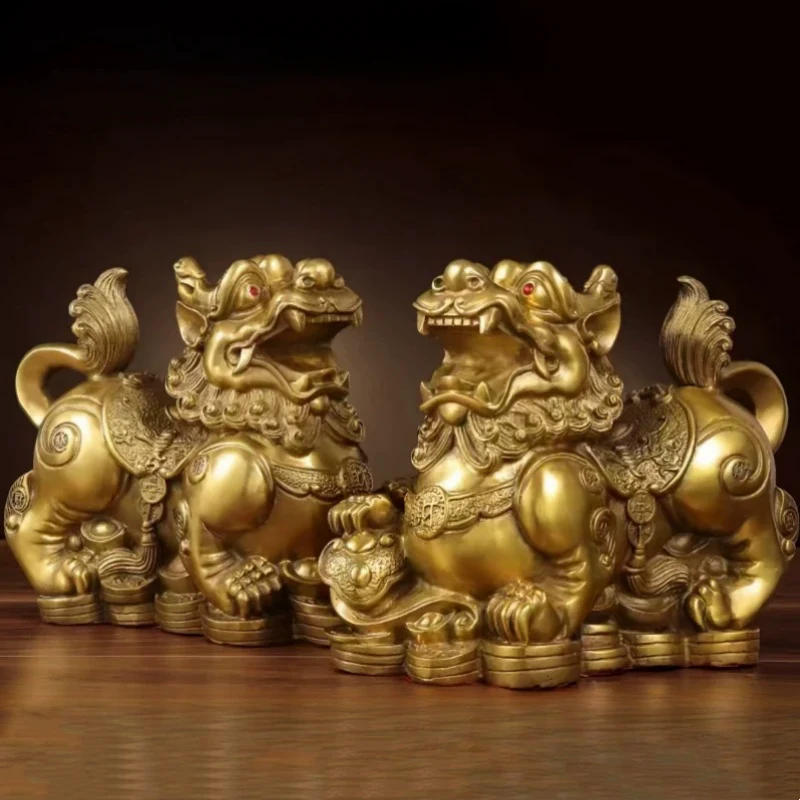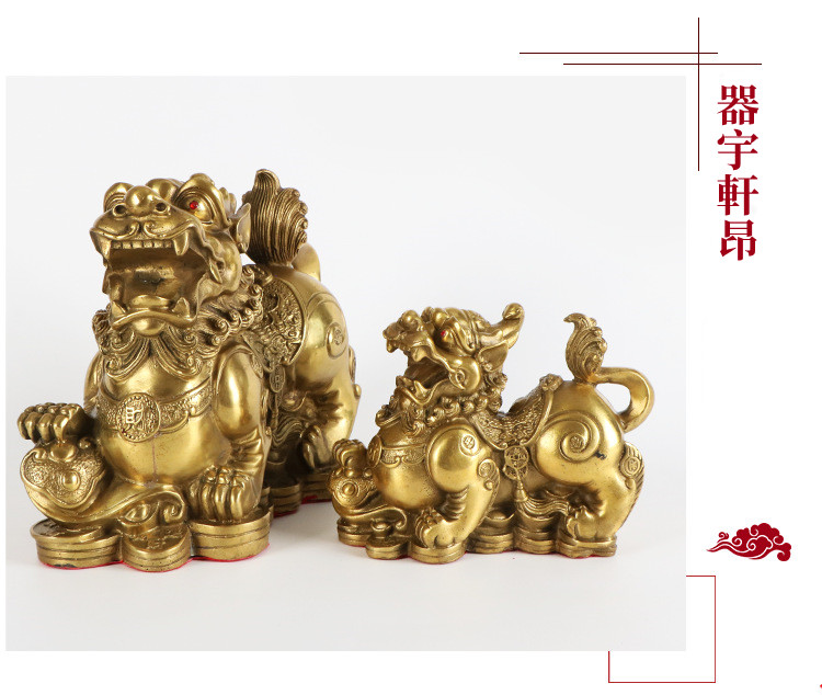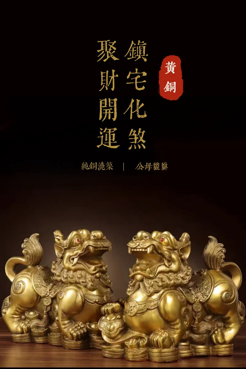 鎮宅化煞 | 聚財開運 | 一對入鎮宅聚財公母貔貅擺件 | 純銅鑄造 | 大師工藝 | 古樸器型器宇軒昂招財聚財守財黃銅貔貅擺件一對入