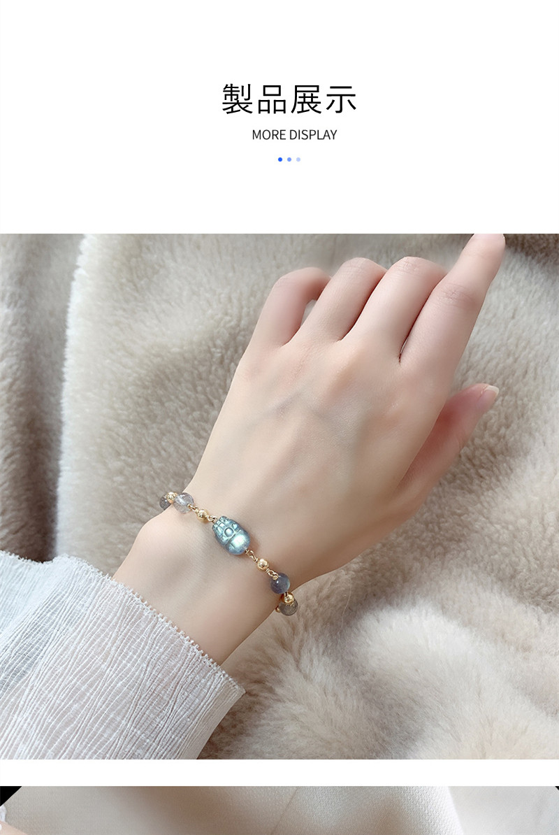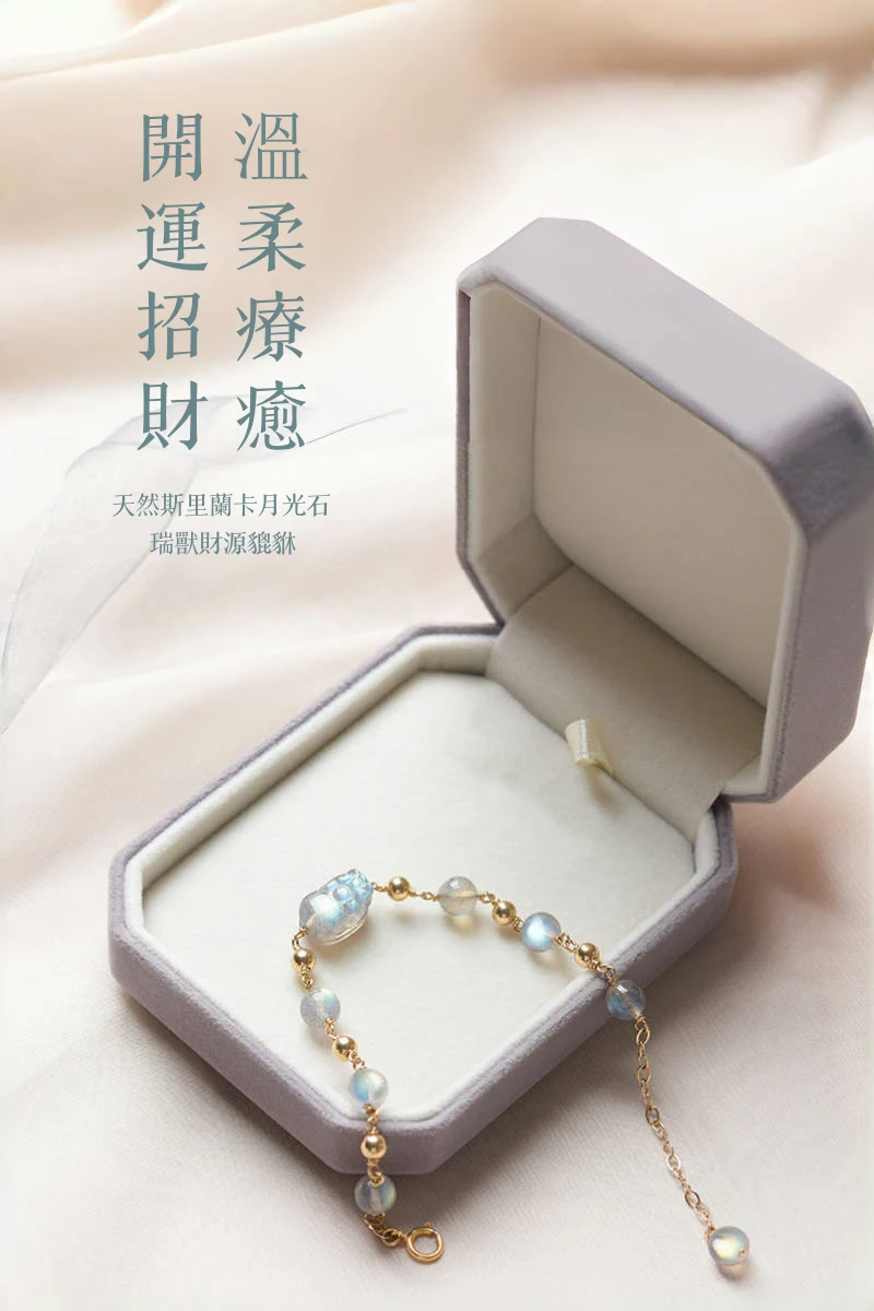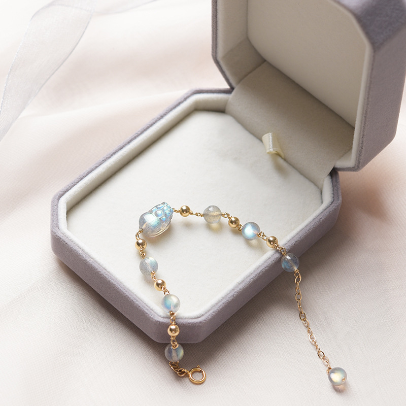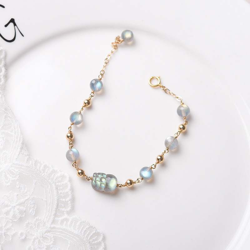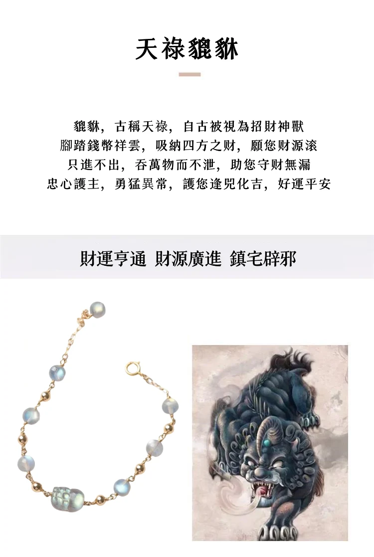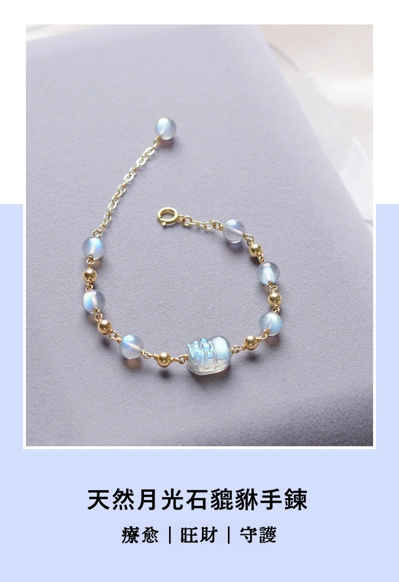 溫柔療愈 | 開運招財 | 天然斯里蘭卡寶石級月光石貔貅手鍊 | 手工立體精雕 | 14K包金格珠 | 療愈招財超美月光石貔貅女招財貔貅手鍊