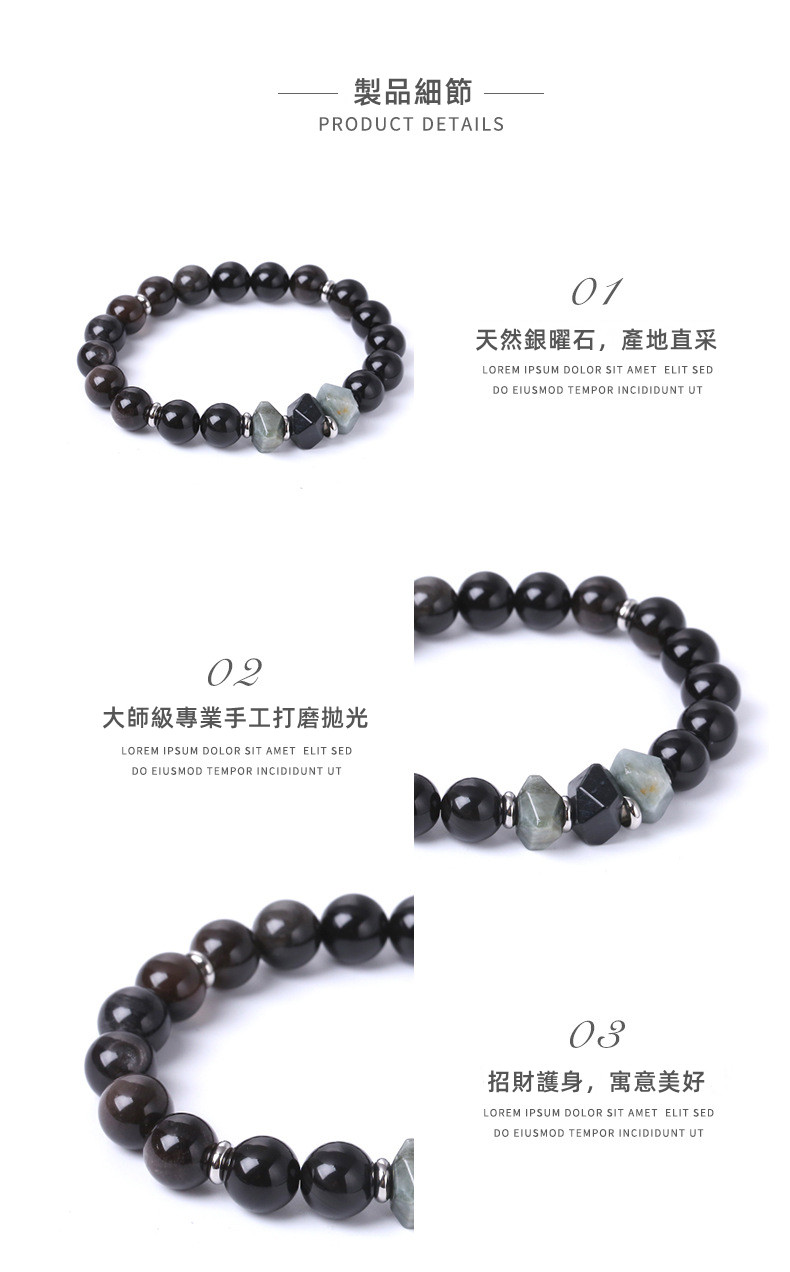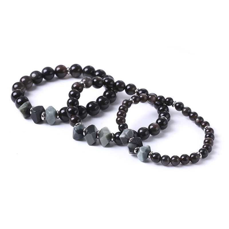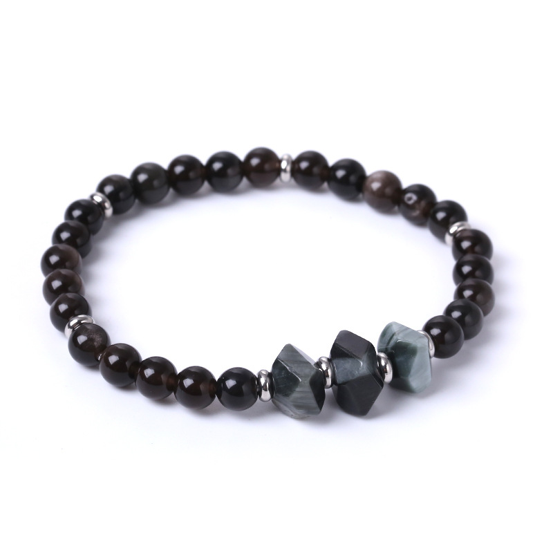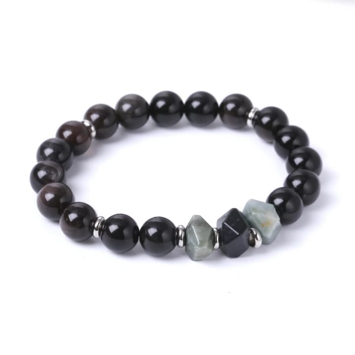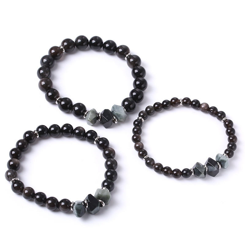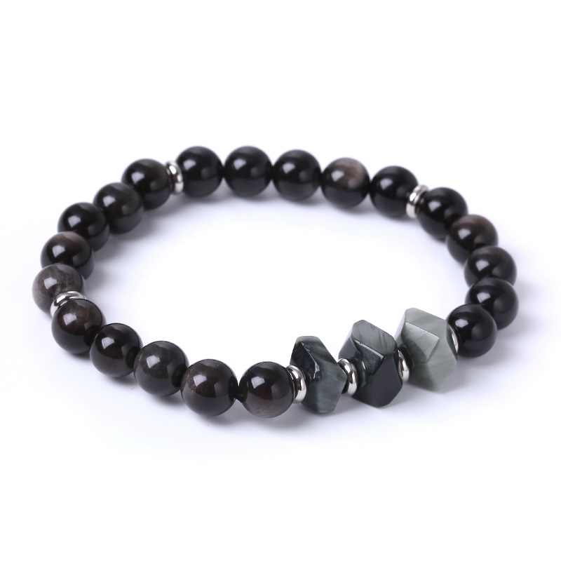 天然銀曜石 | 不規則設計師款 | 獨特個性設計師款不規則稀有天然銀曜石男女串珠手鍊