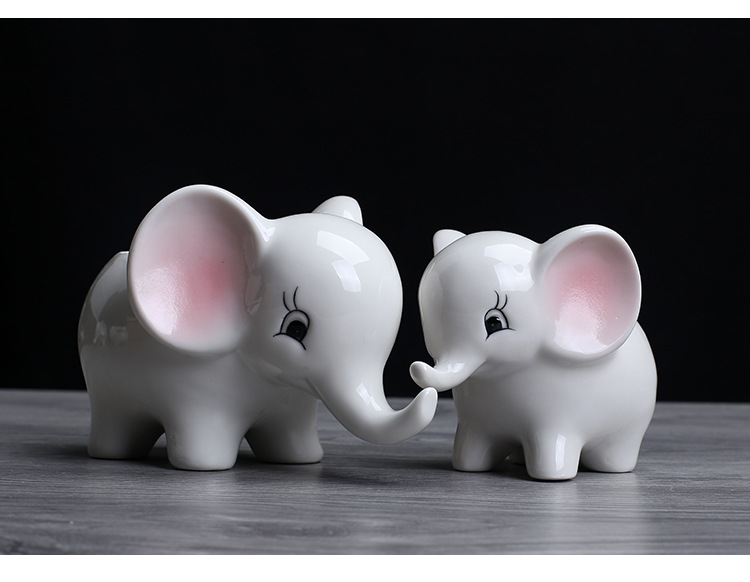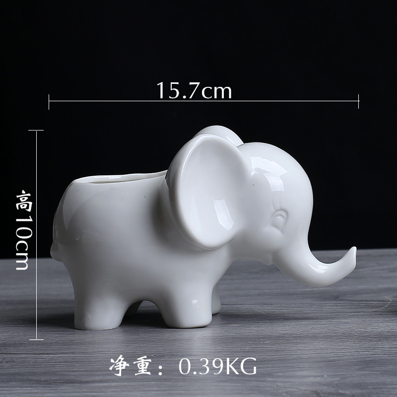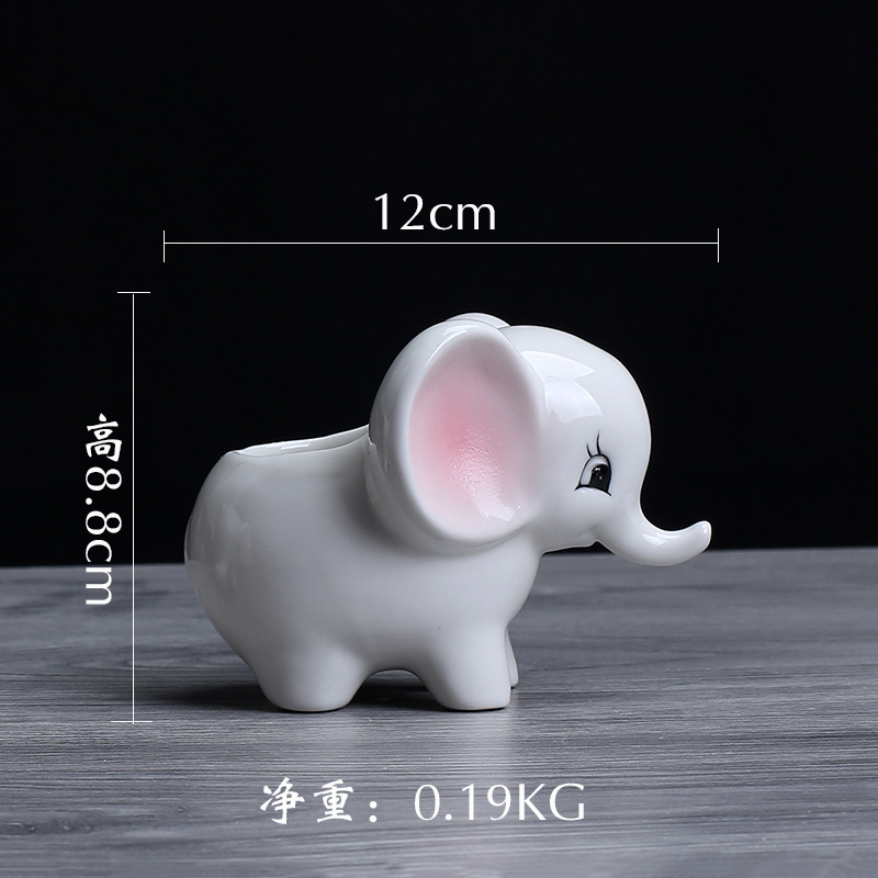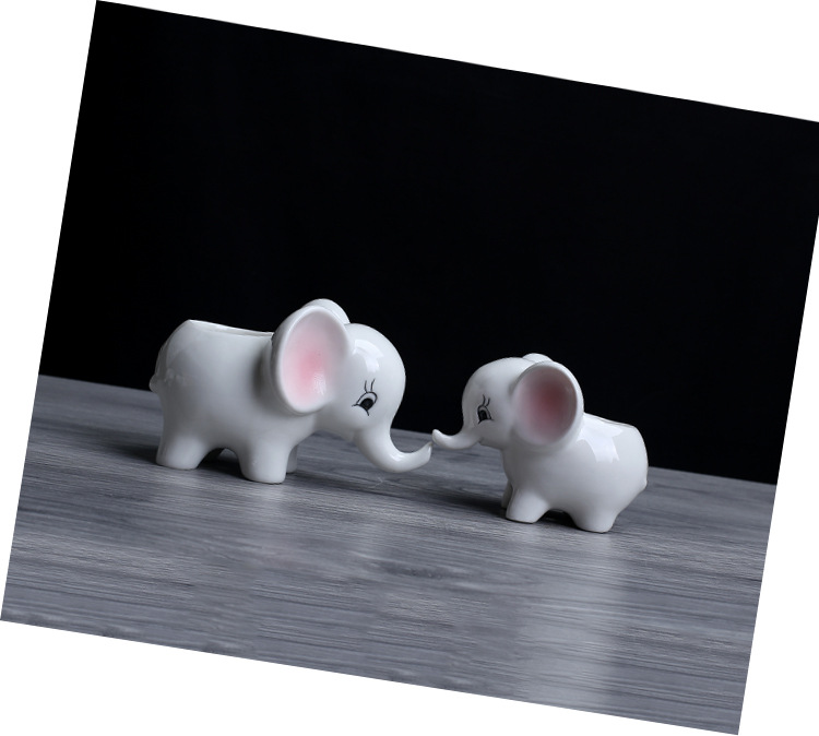 【二入】【德化白瓷】【手工色釉】創意家居可愛母子小象白瓷綠植多肉花盆套組