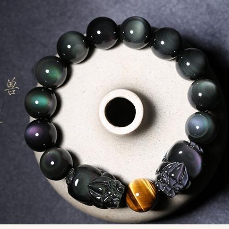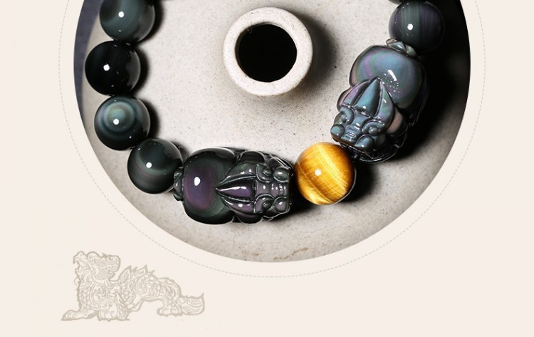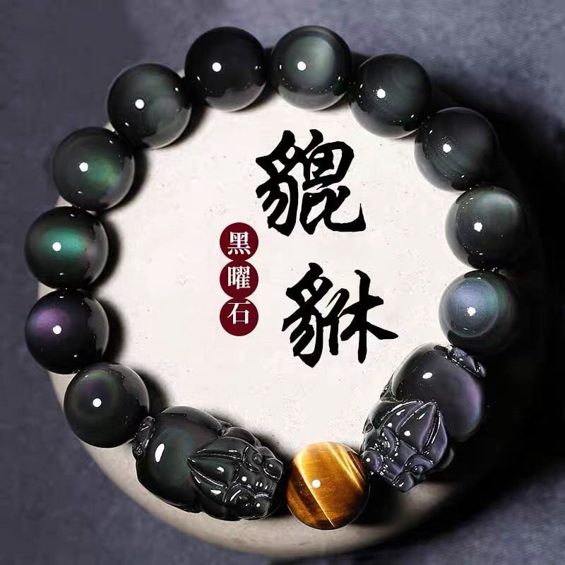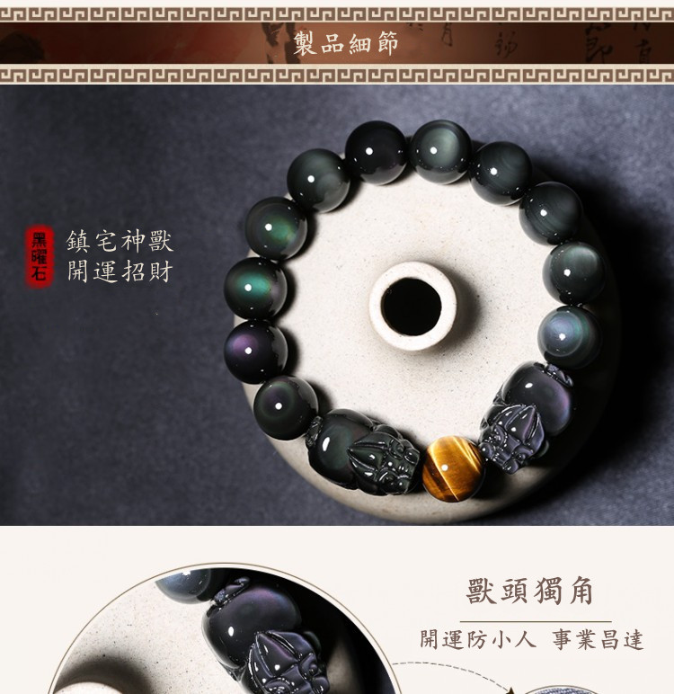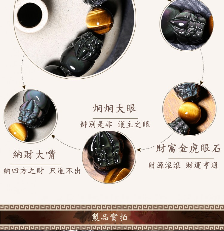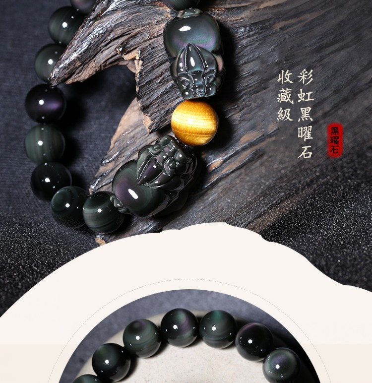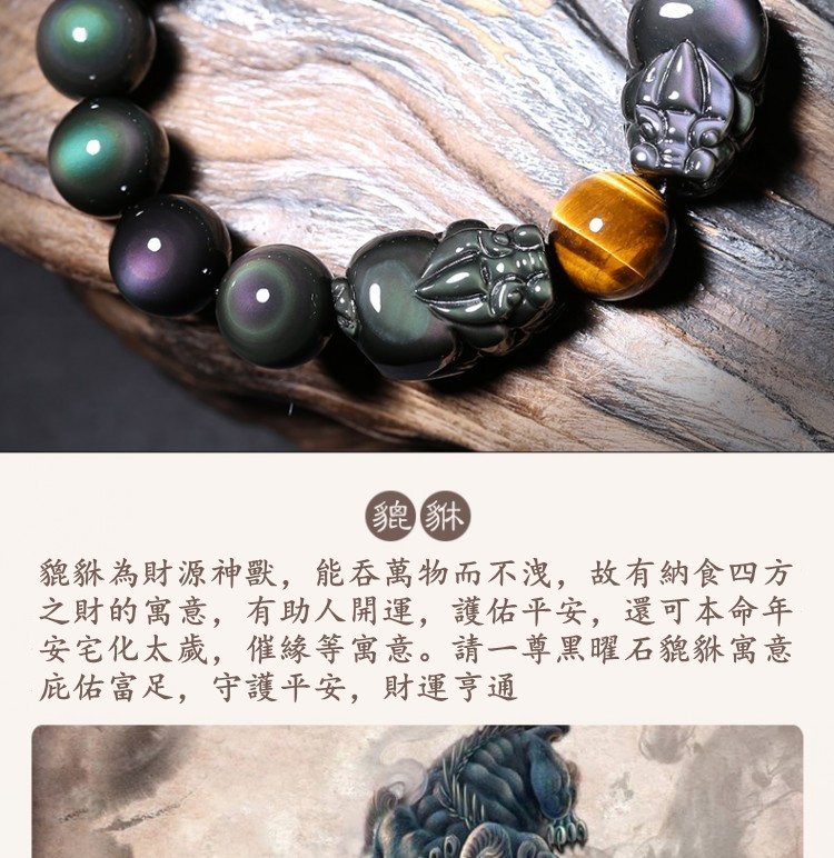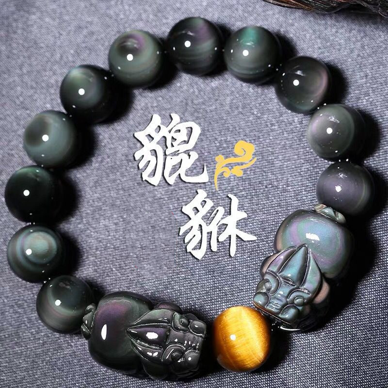 雙貔戲珠 | 聚財好運 | 天然彩虹黑曜石貔貅手鍊 | 手工精雕雙貔貅 | 財富金虎眼 | 強勢招財開運彩虹黑曜石男女雙貔貅手串手鍊