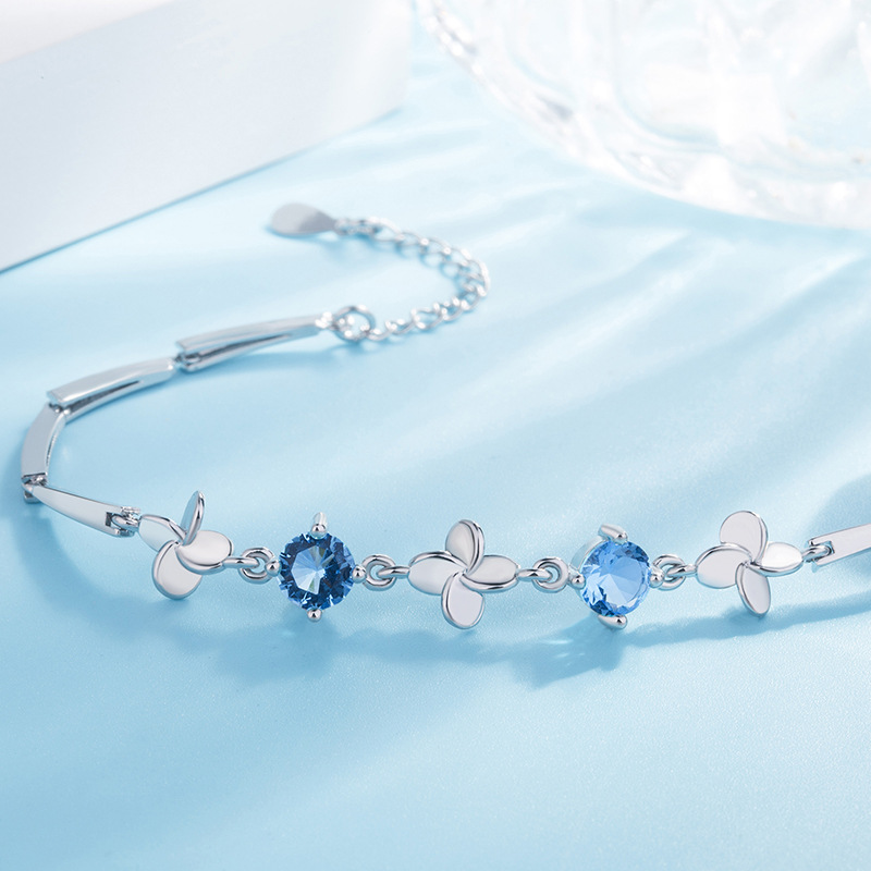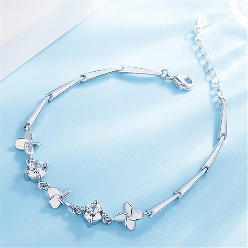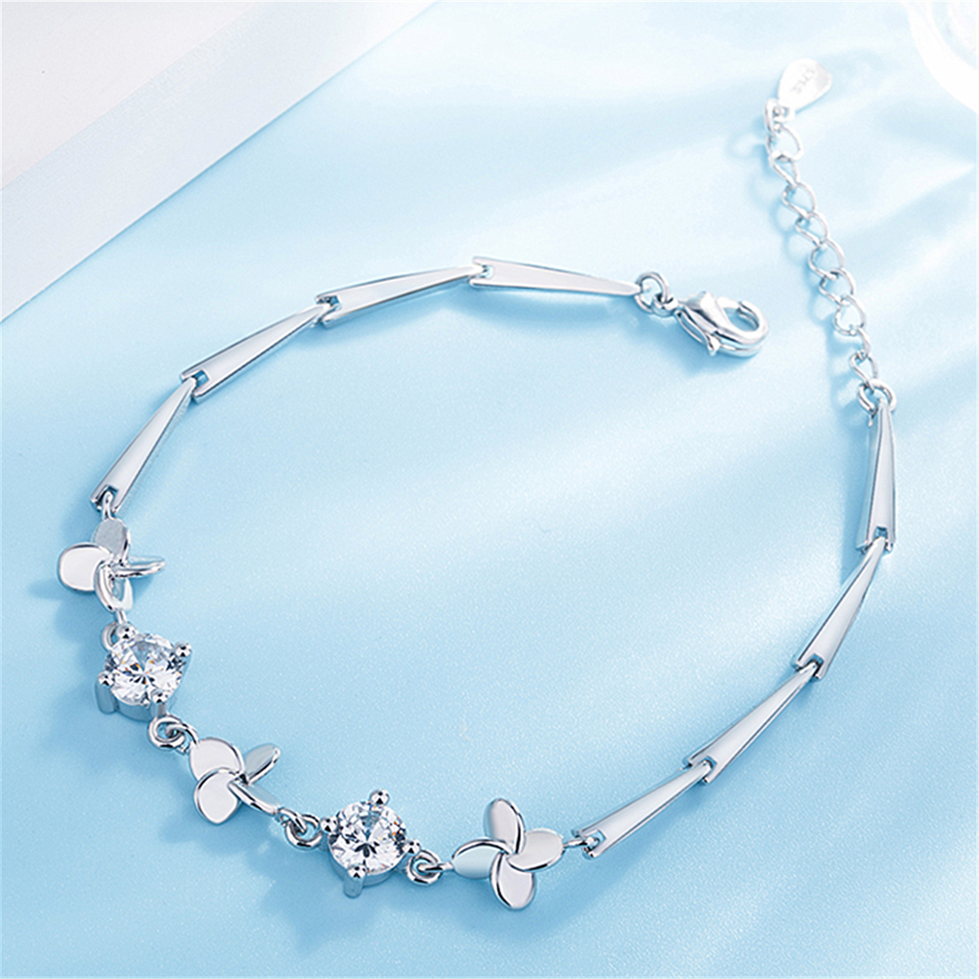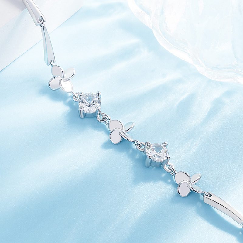 不期而遇 | 幸福的四葉草造型鑲嵌彩鑽鍍白金優雅女手鍊
