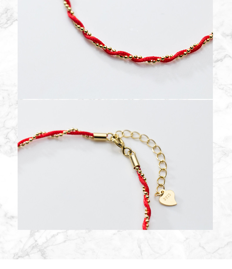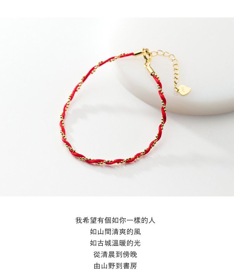 幸運紅線 | 925純銀開運珠 | 纏繞波浪設計 | 腕間風情日系紅繩纏繞波浪設計925純銀女手鍊