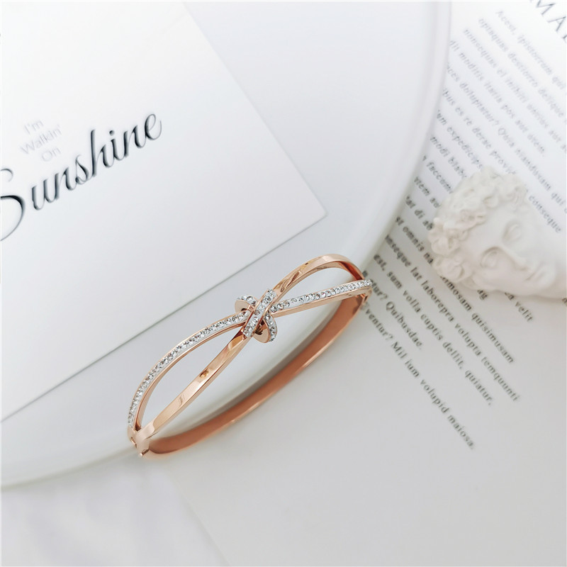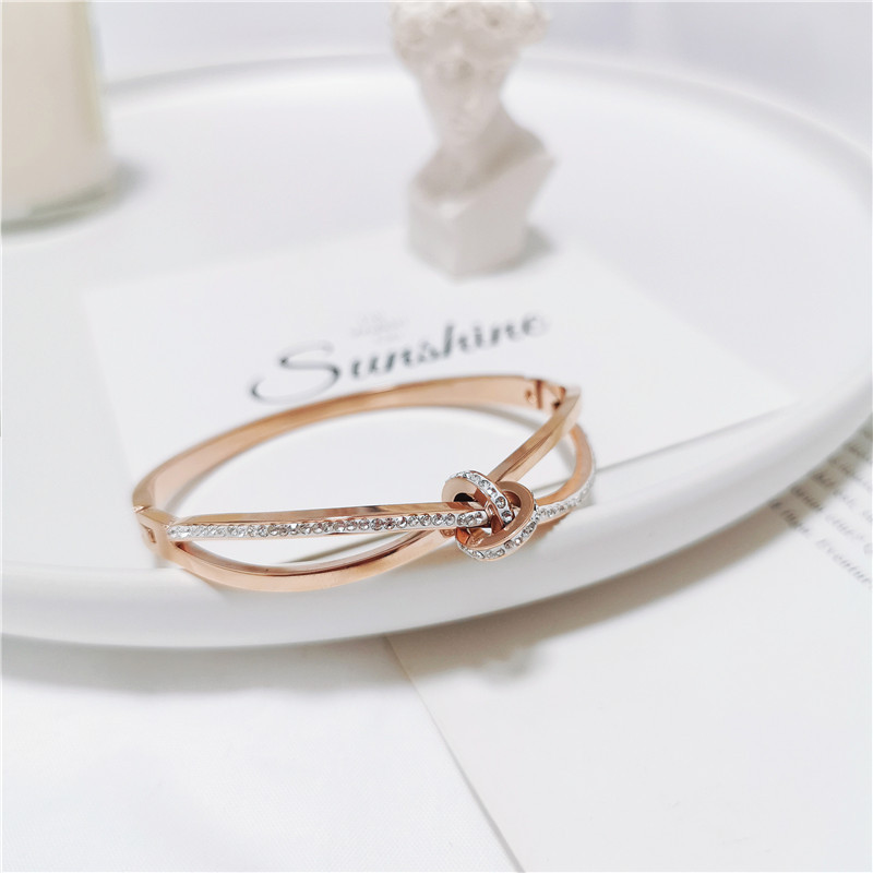 輕奢時尚幾何錯位設計鈦鋼鍍玫瑰金鑲鑽女手環