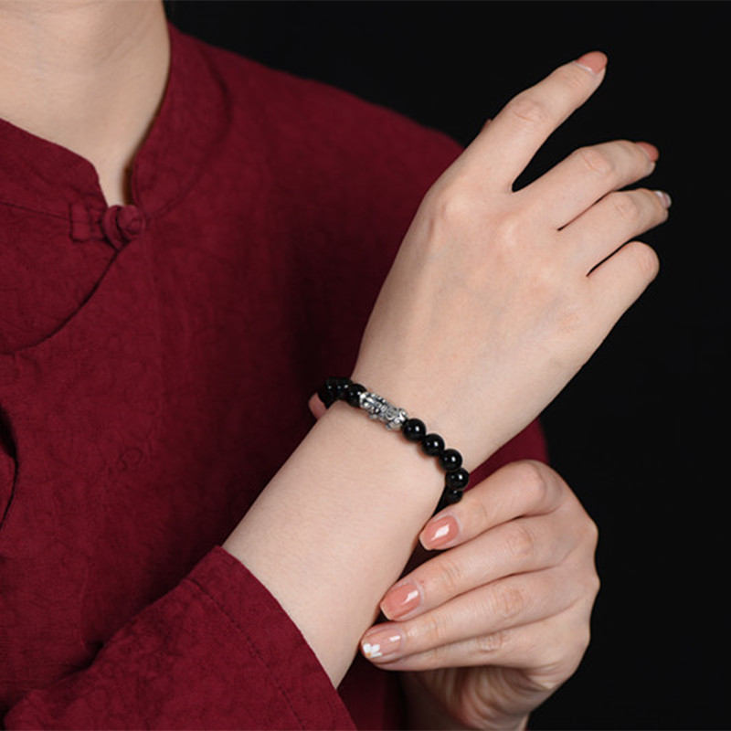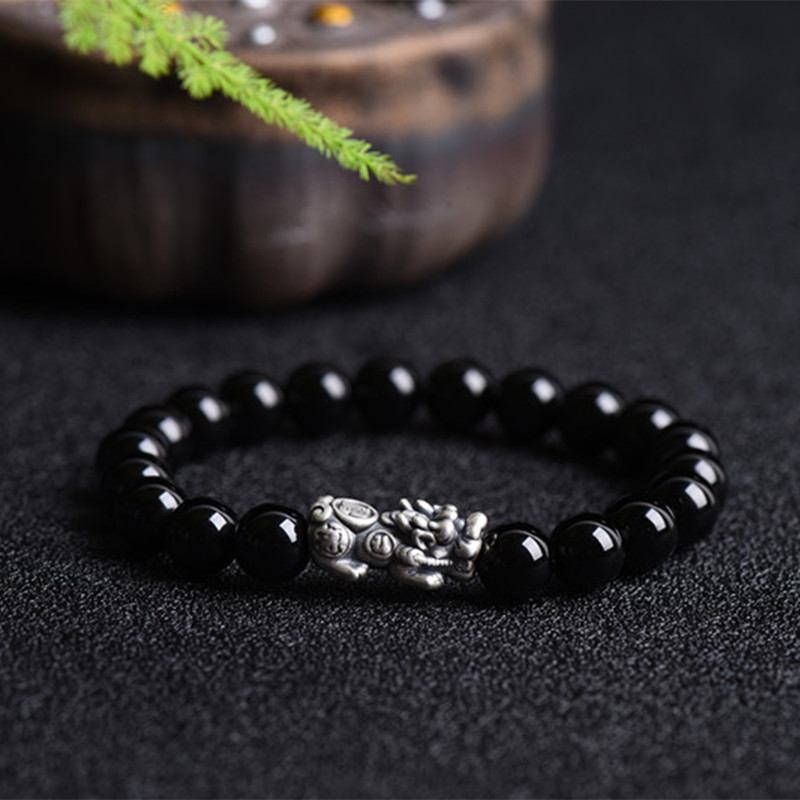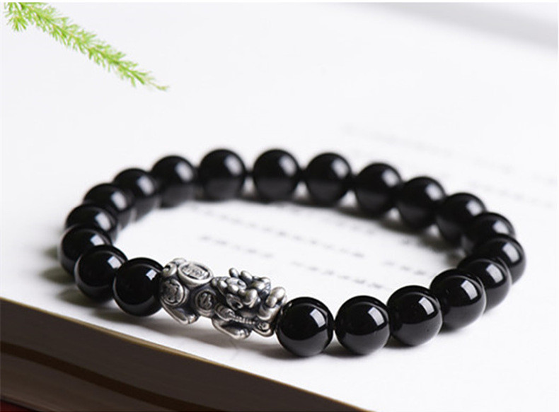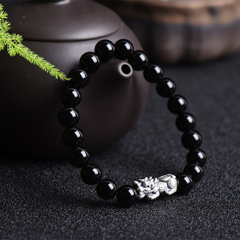 黑曜石珠鍊+純銀貔貅