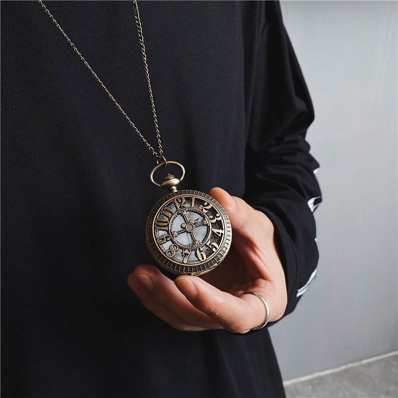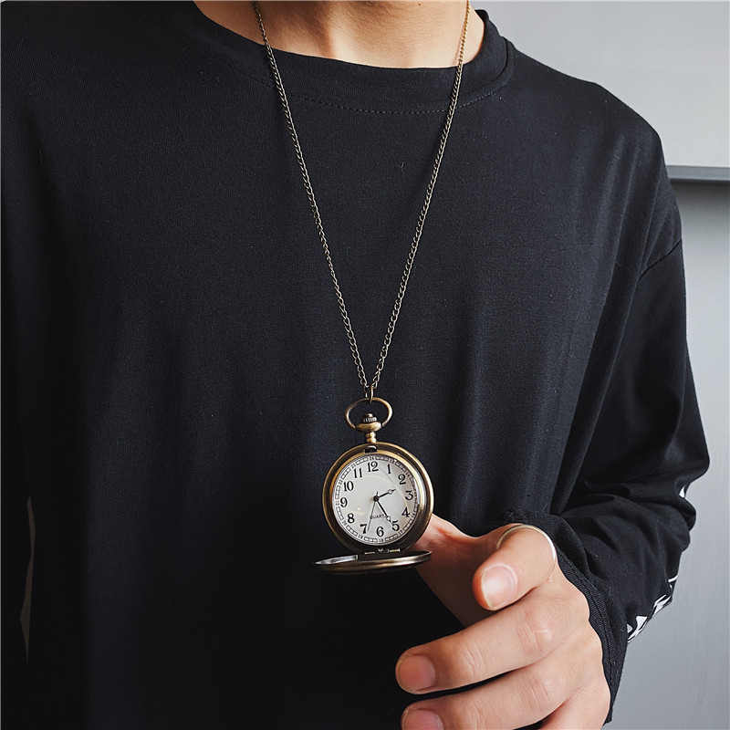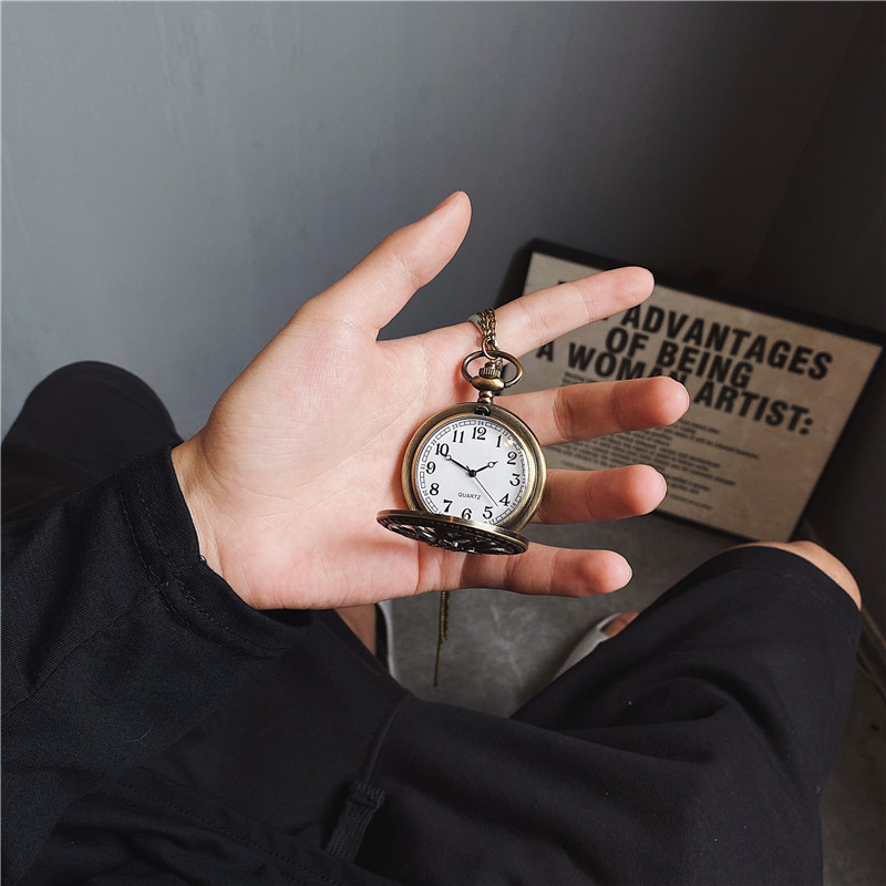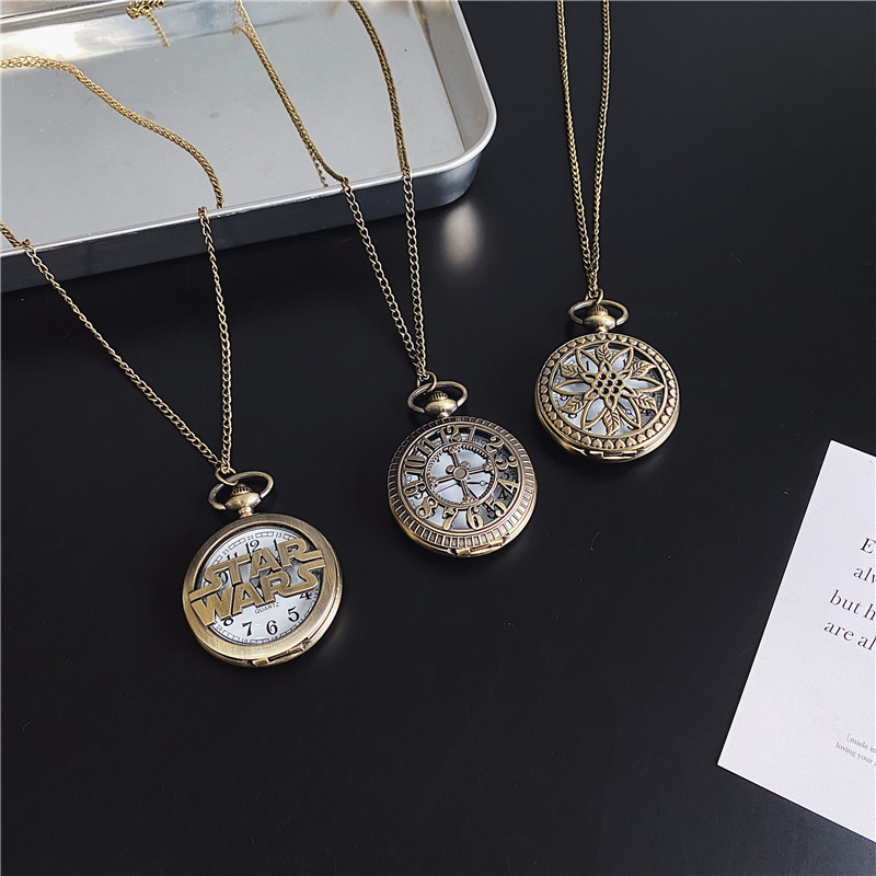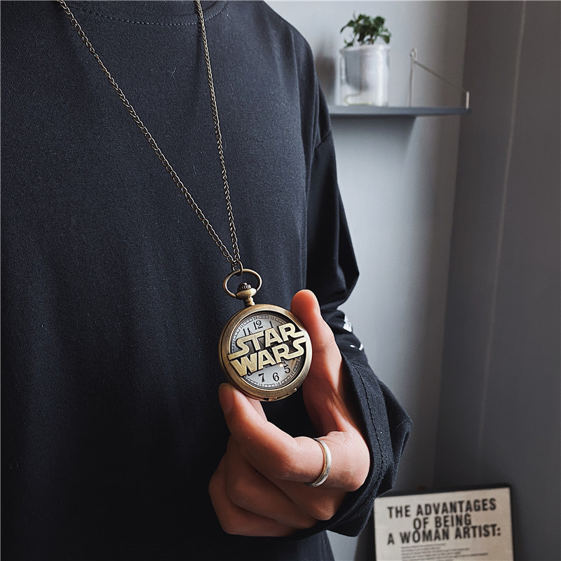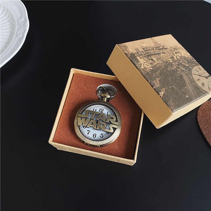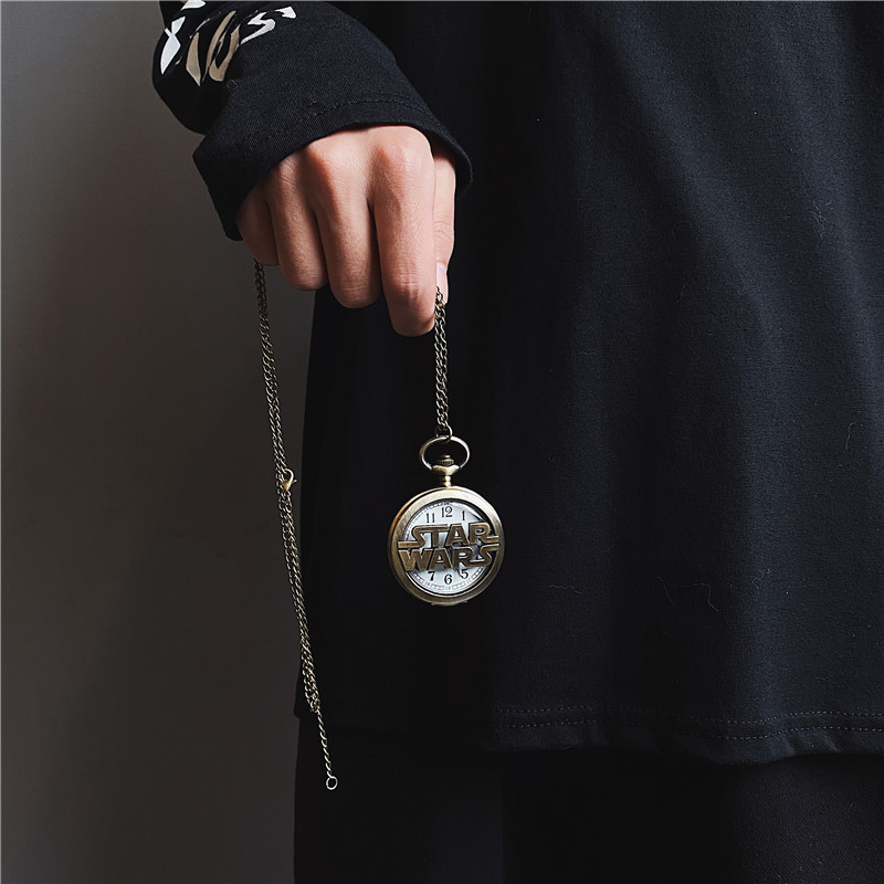 個性復古拋光設計星戰主題翻蓋石英懷錶