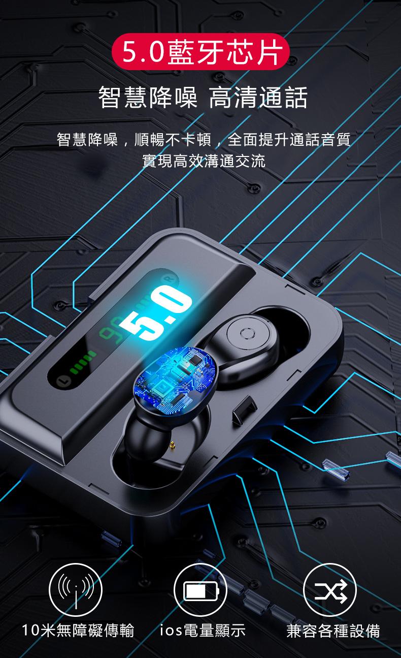 【智慧電量顯示】【自動連接】【超長續航】【三防】一鍵觸控Amoi5.0電量數顯雙耳真無線藍芽耳機