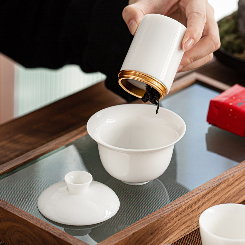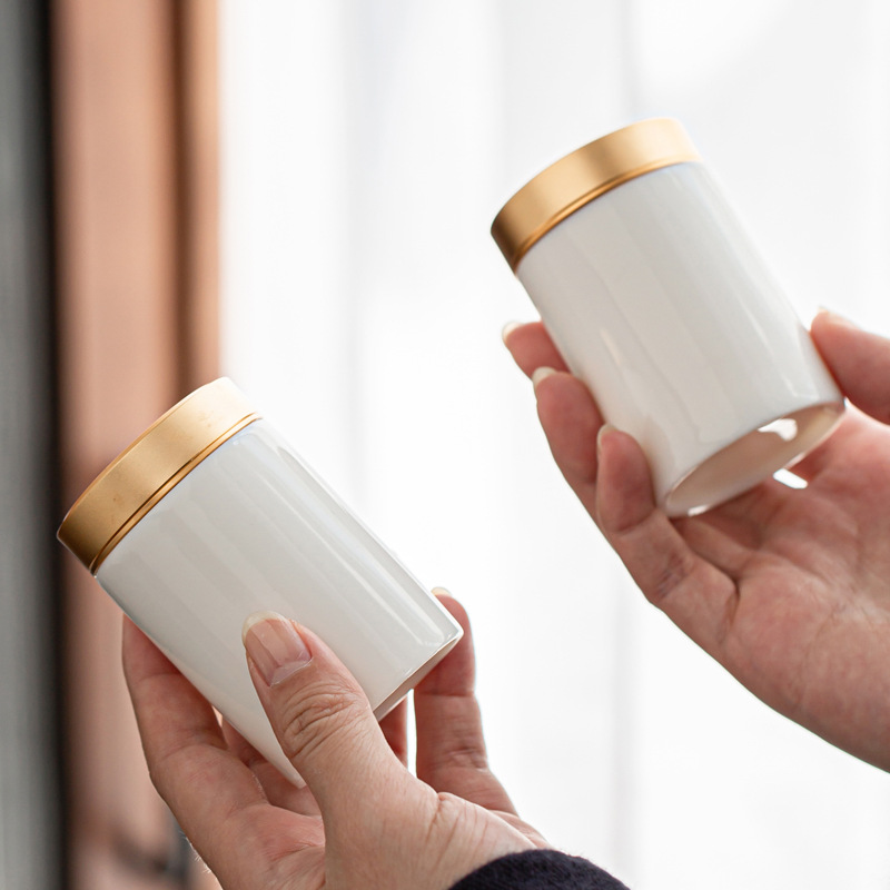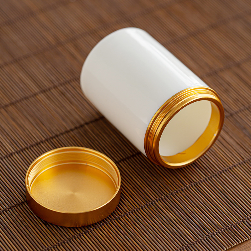 【羊脂白玉】【隨身罐】羊脂白玉合金蓋迷你隨身直筒小號茶葉罐 (55ML)