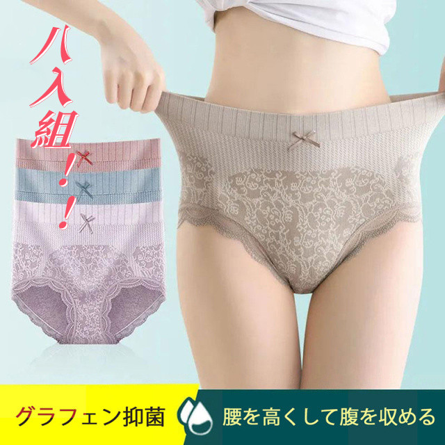 超值八入組 | AAA級石墨烯抑菌 | 性感舒適蕾絲 | 舒適高腰 | 立體收腹提臀 | 日本賣爆石墨烯蜂巢抑菌高透氣不悶女高腰性感蕾絲內褲八入套組