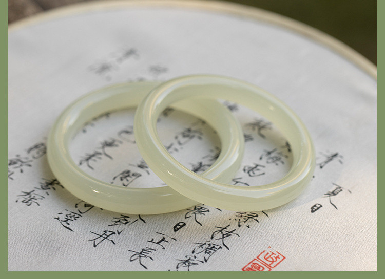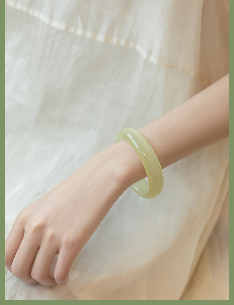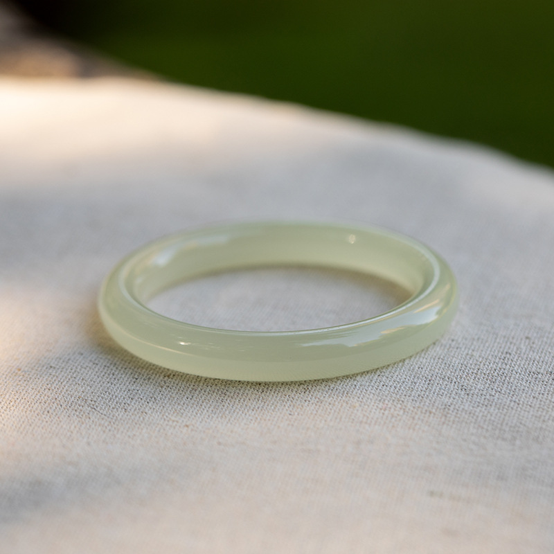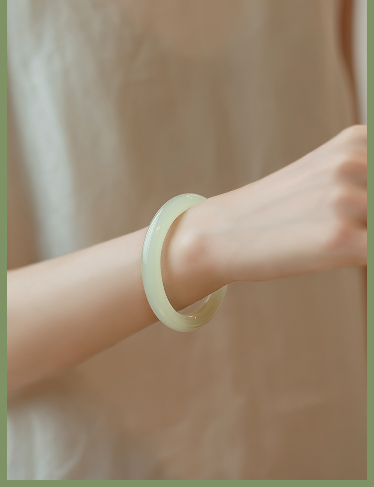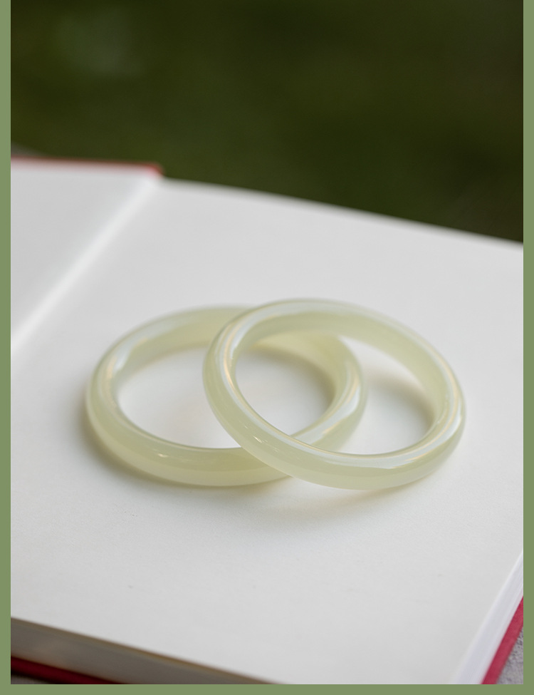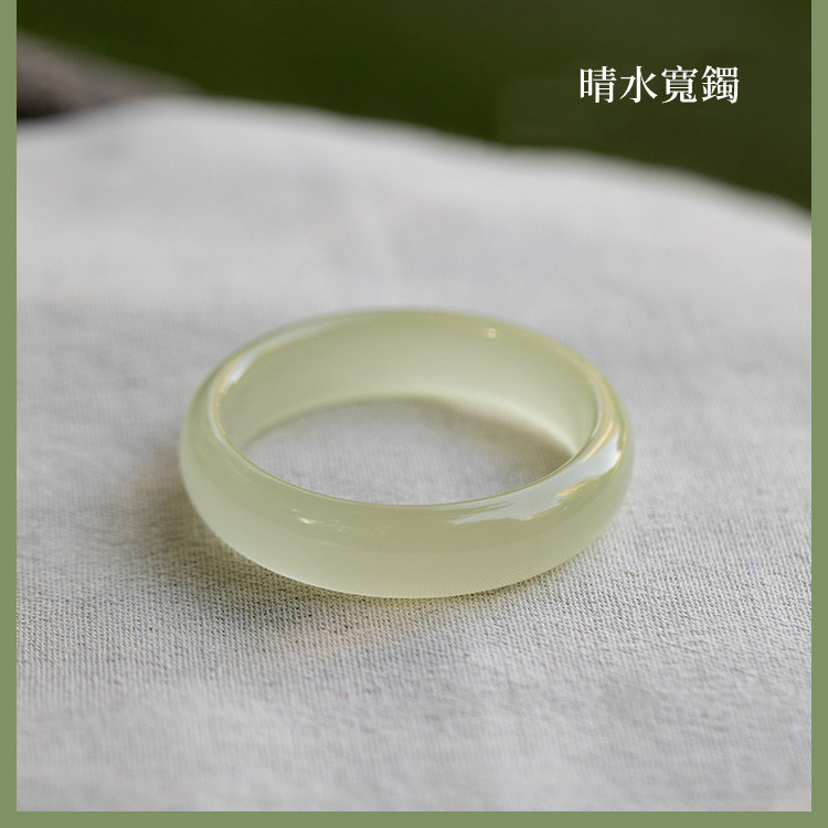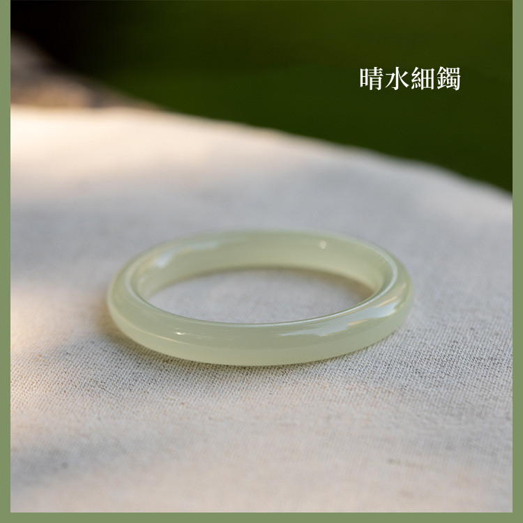 天然青白玉 | 高級晴水料 | 輕靈秀美溫潤冰透青葡萄色古典感天然青白蠶絲玉閉口女手鐲