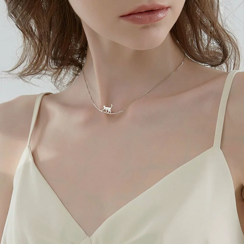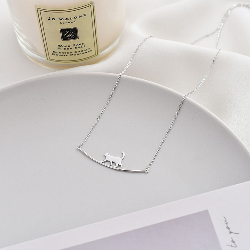 想要做一隻貓 | 微笑貓咪項鍊 | S925純銀 | 精緻手工拋光 | 原創設計高級感S925純銀魔女貓咪微笑鎖骨鍊女項鍊