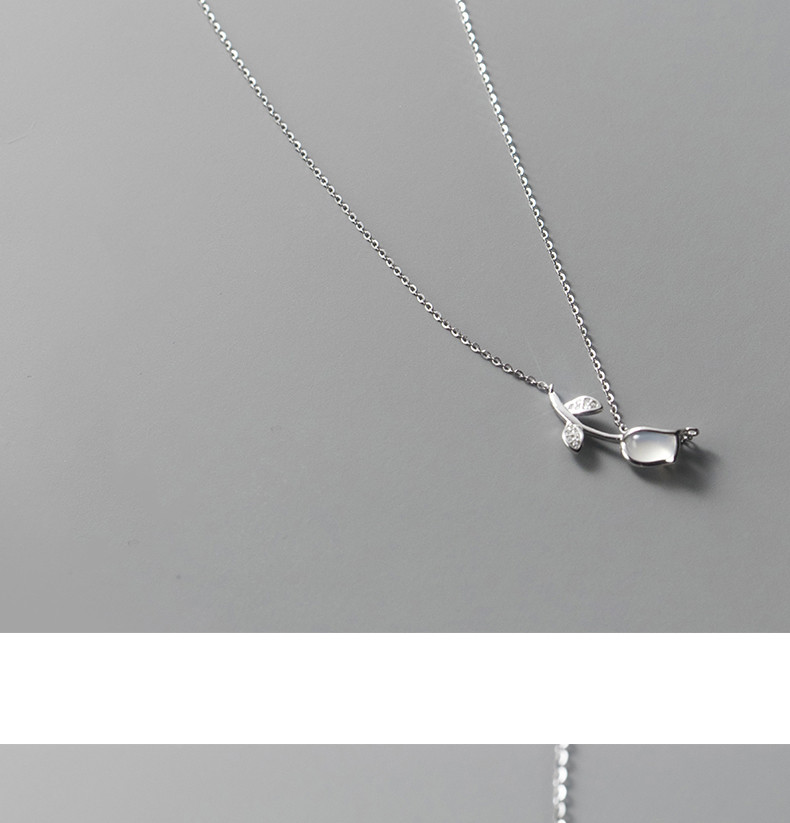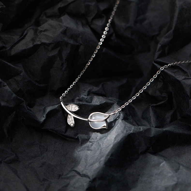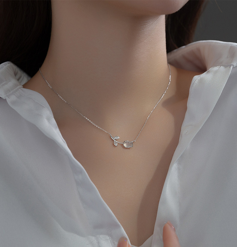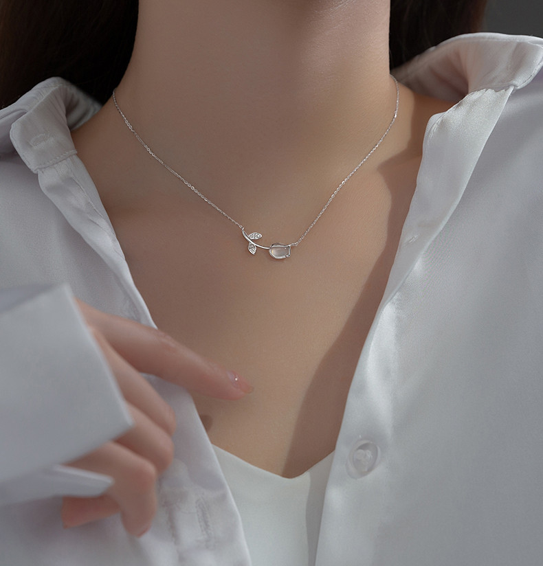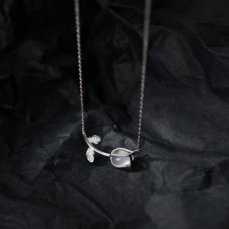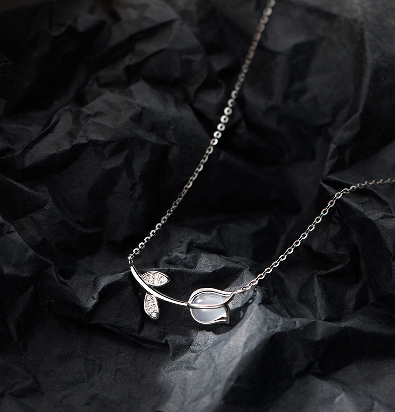 送妳一朵鬱金香 | S925純銀 | 鑲嵌天然玉髓 | 原創設計鬱金香造型輕奢鑲鑽玉髓女項鍊鎖骨鍊