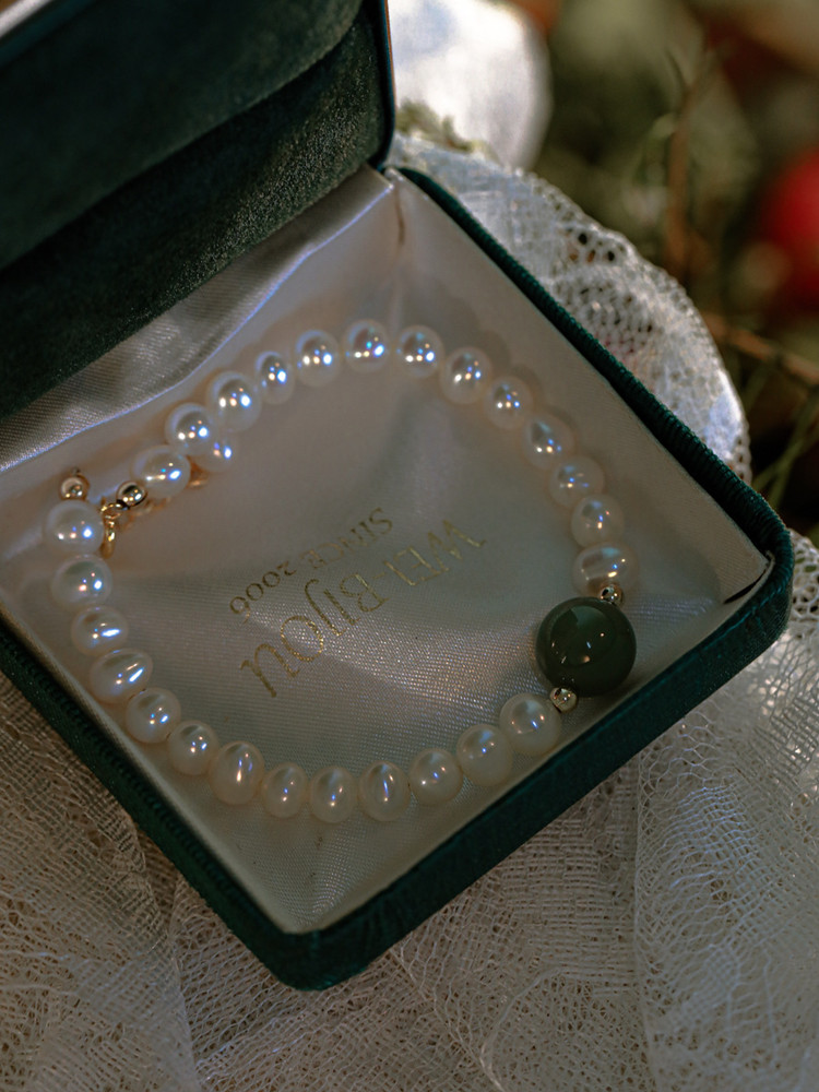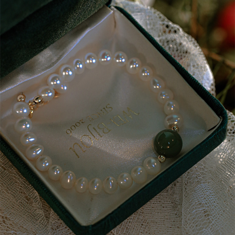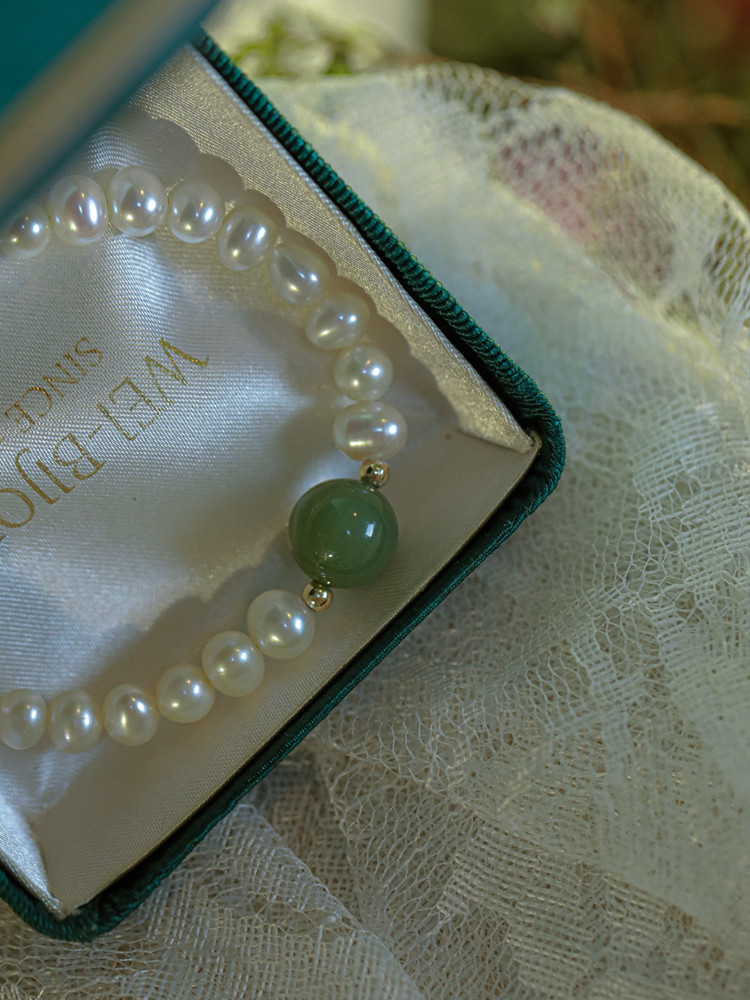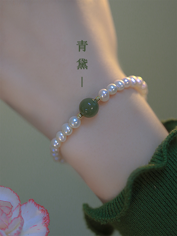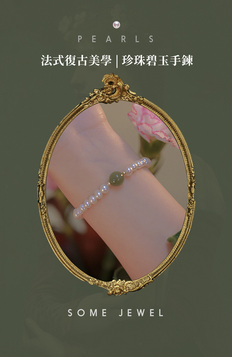 青黛 | 巴洛克珍珠配碧玉貓眼手鍊 | 法式復古美學設計巴洛克珍珠配碧玉貓眼女手鍊