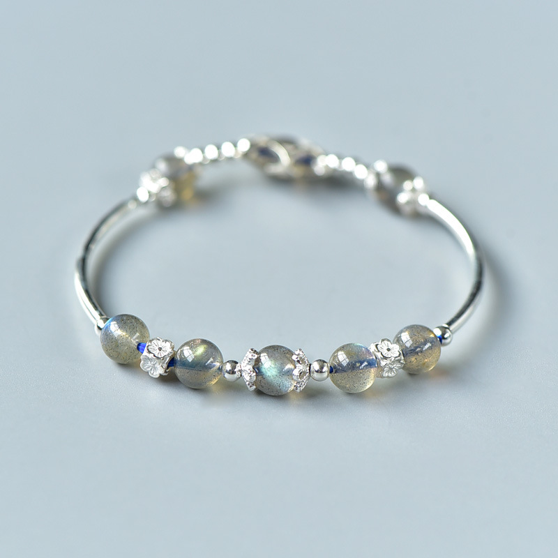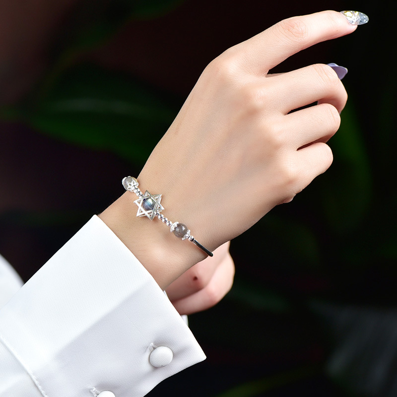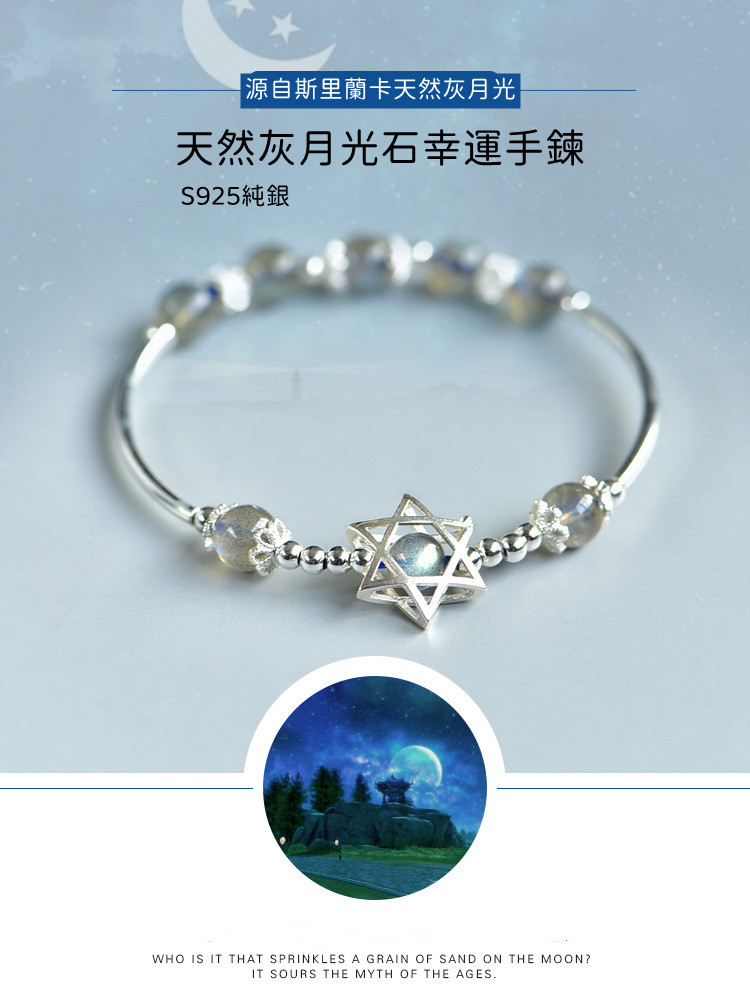 星光相伴 | 天然月光石純銀手鍊 | S925純銀 | 原創設計天然斯里蘭卡月光石S925純銀手環女幸運手鍊