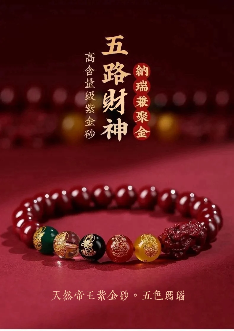 五路財神大開運 | 招財瑞獸貔貅 | 天然帝王紫金硃砂貔貅手鍊 | 五色瑪瑙財神珠 | 2025天然帝王紫金砂手工精雕貔貅五路財神男女招財手鍊