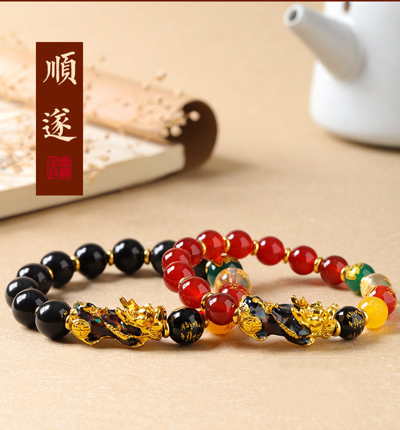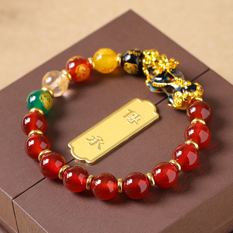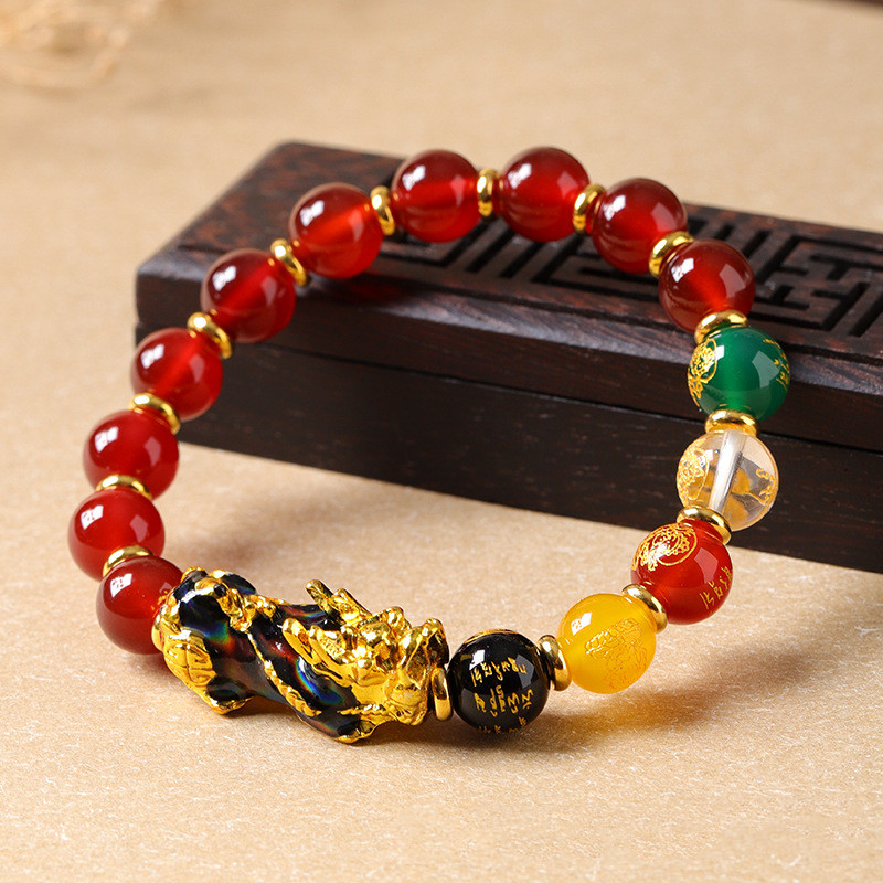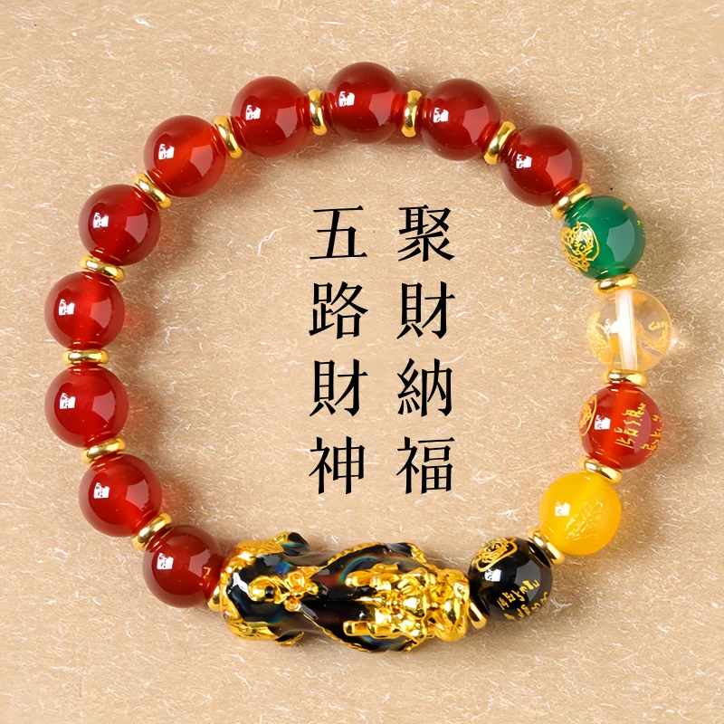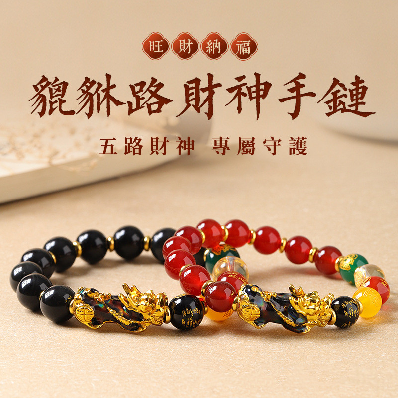 聚財納福 | 五路財神 | 招財貔貅天然紅瑪瑙手鍊 | 溫感變色開運貔貅 | 旺財納福 | 招財開運 | 變色招財貔貅天然水晶紅瑪瑙佛珠手串手鍊