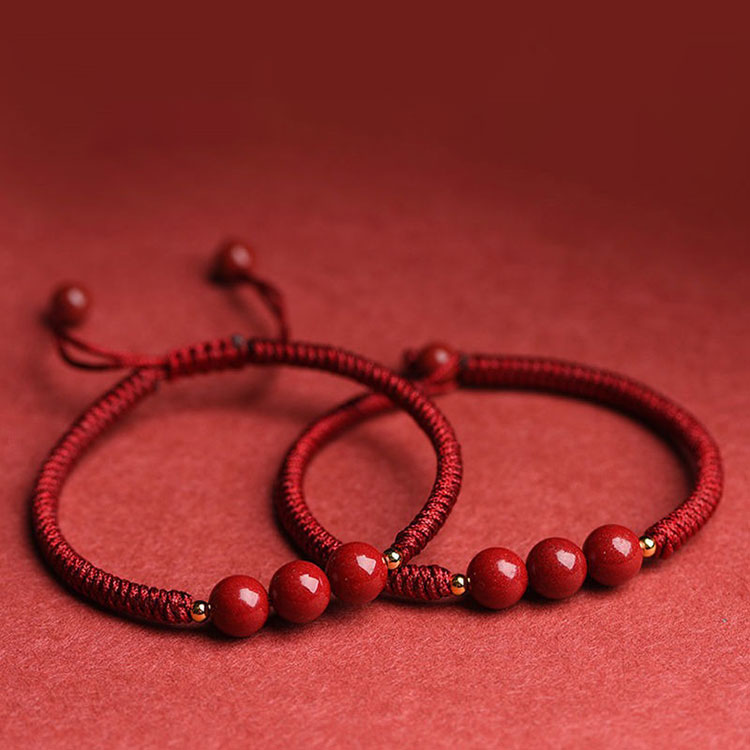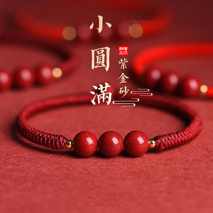 小圓滿 | 天然帝王紫金硃砂 | 手編幸運紅繩 | 簡約設計收藏級保真帝王紫金硃砂三株素繩女手鍊