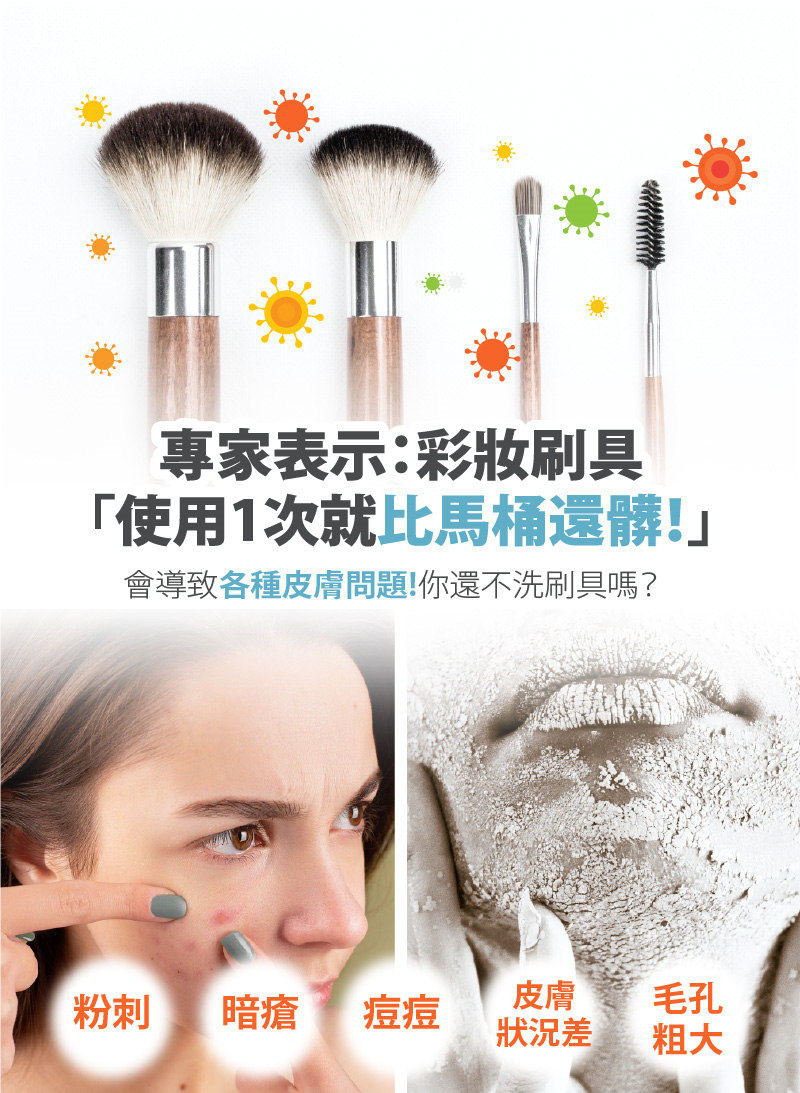 *沒清洗過的化妝刷具細菌比馬桶多出100倍!100倍!100倍!!!