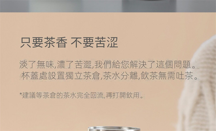 茶水分離自動鎖水 | 安全316奧氏體不鏽鋼 | 自帶茶隔濾網 | 長效保溫鎖溫 | 520ml大容量 | 一杯三用功夫茶具316不鏽鋼泡茶杯保溫瓶