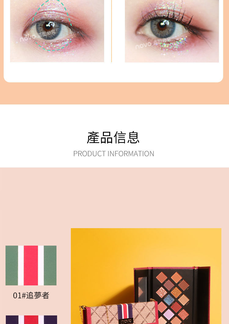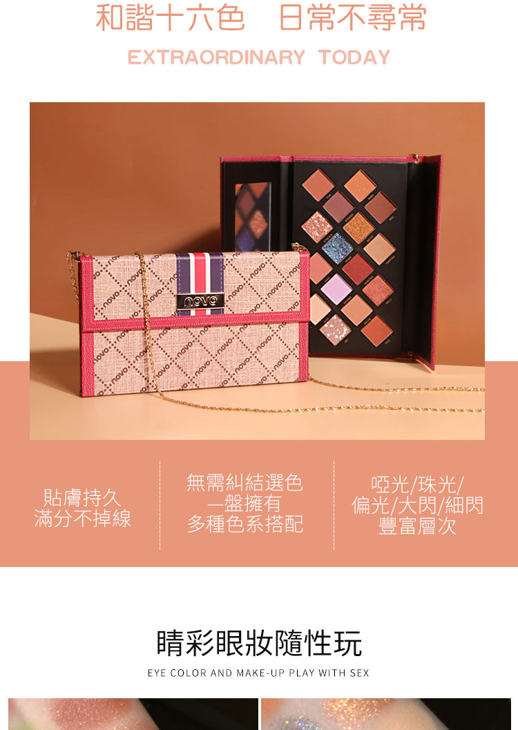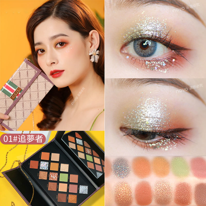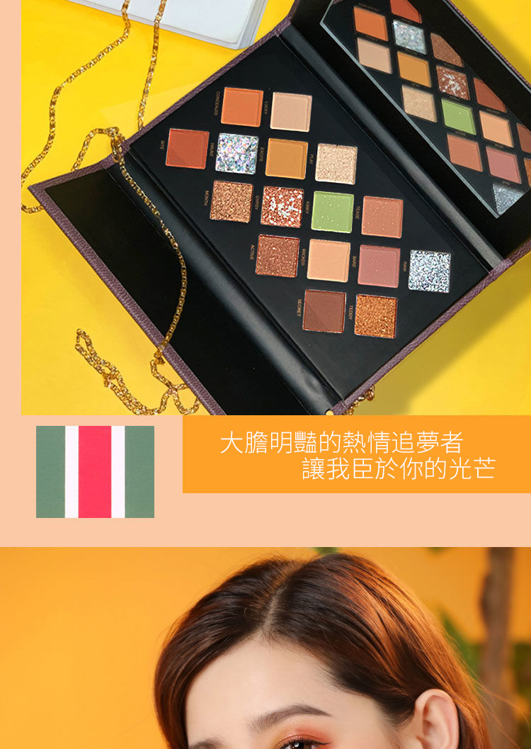 【追夢者16色眼影】【豐富色系層次】文藝復興系列鏈條包包設計多色系啞光珠光偏光大閃細閃16色眼影盤