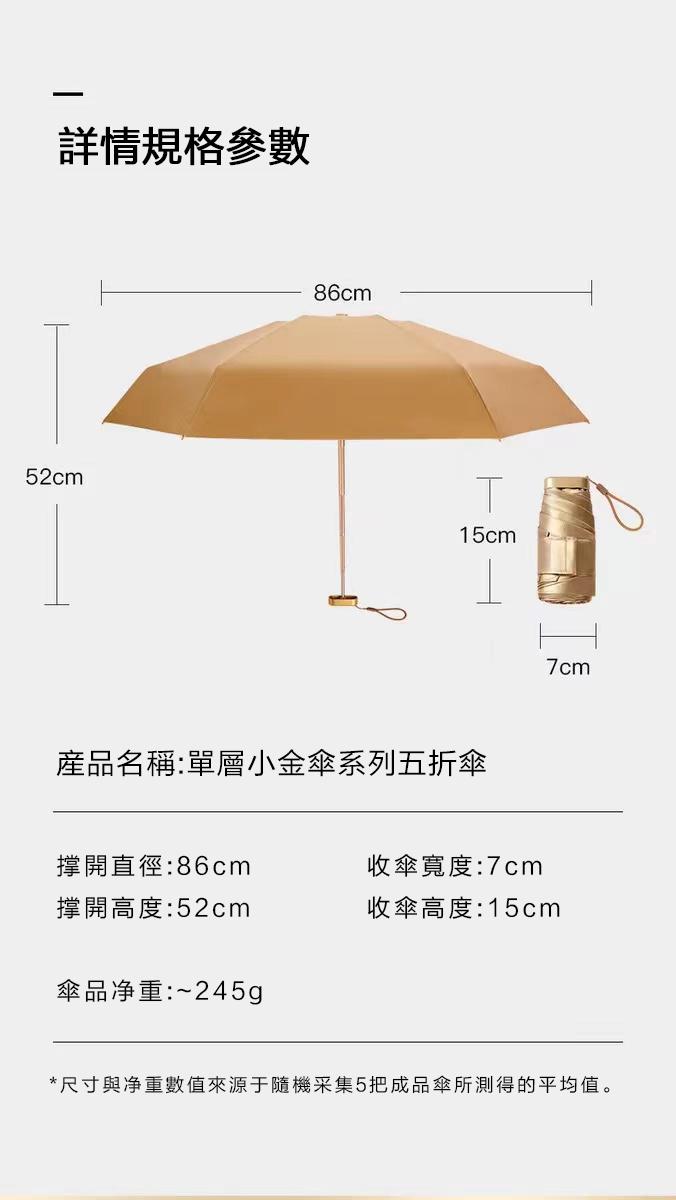 【地表最輕量五折小金傘】【99%超強隔熱防曬】【暴雨級強韌骨架】2022超輕量輕奢晴雨兩用99%UV阻隔隔熱防曬小金傘五折傘