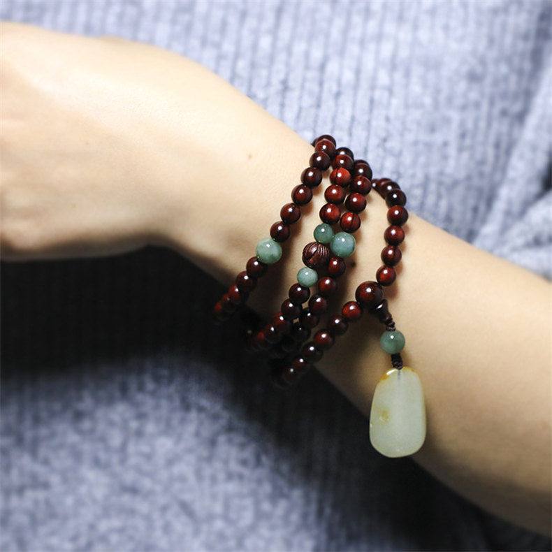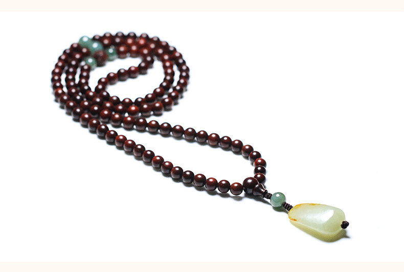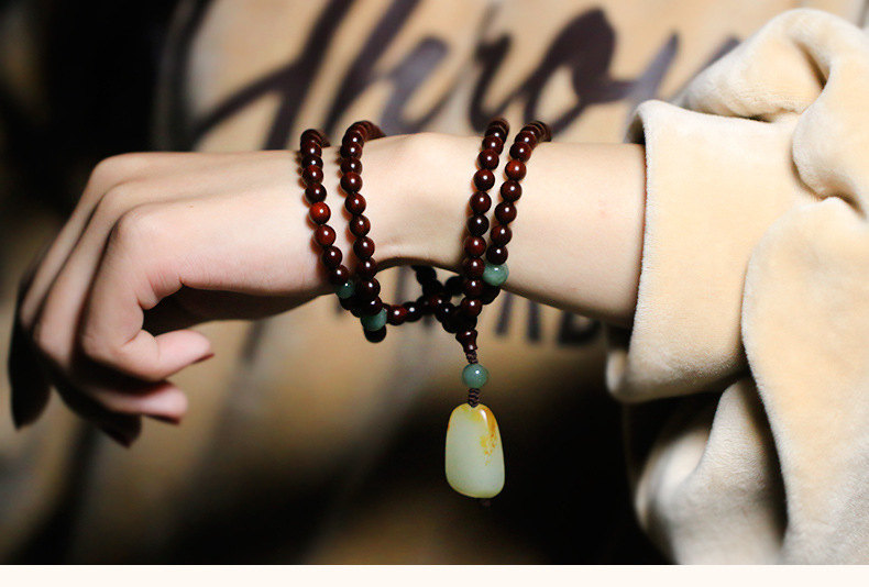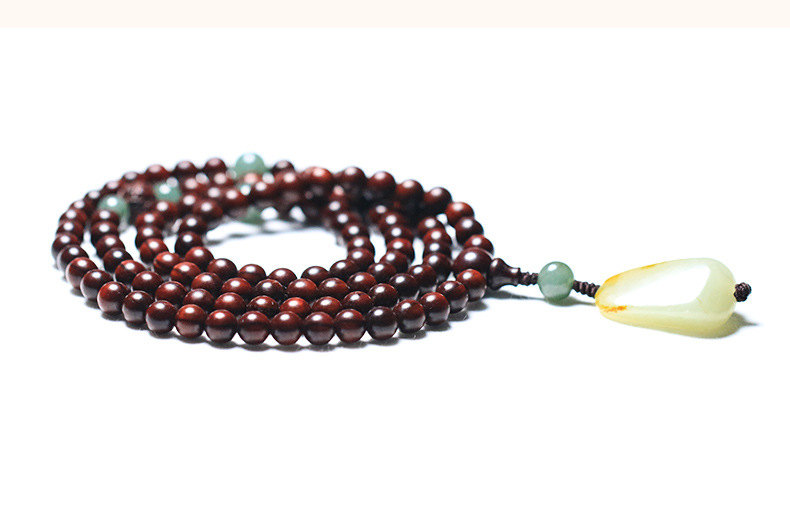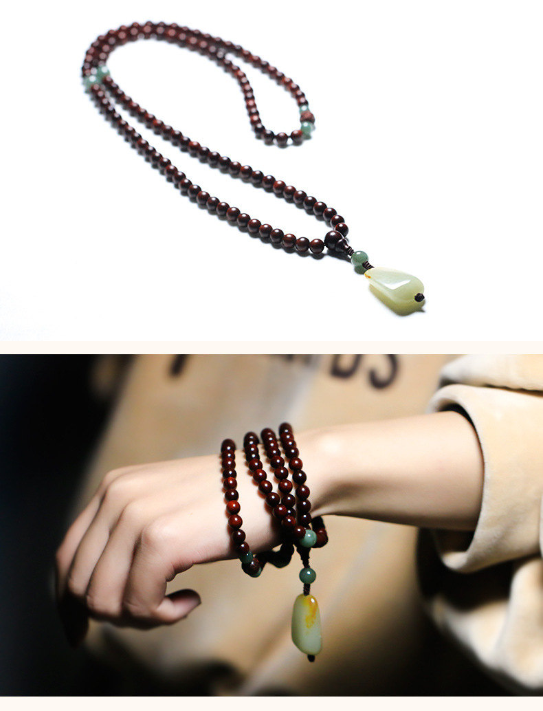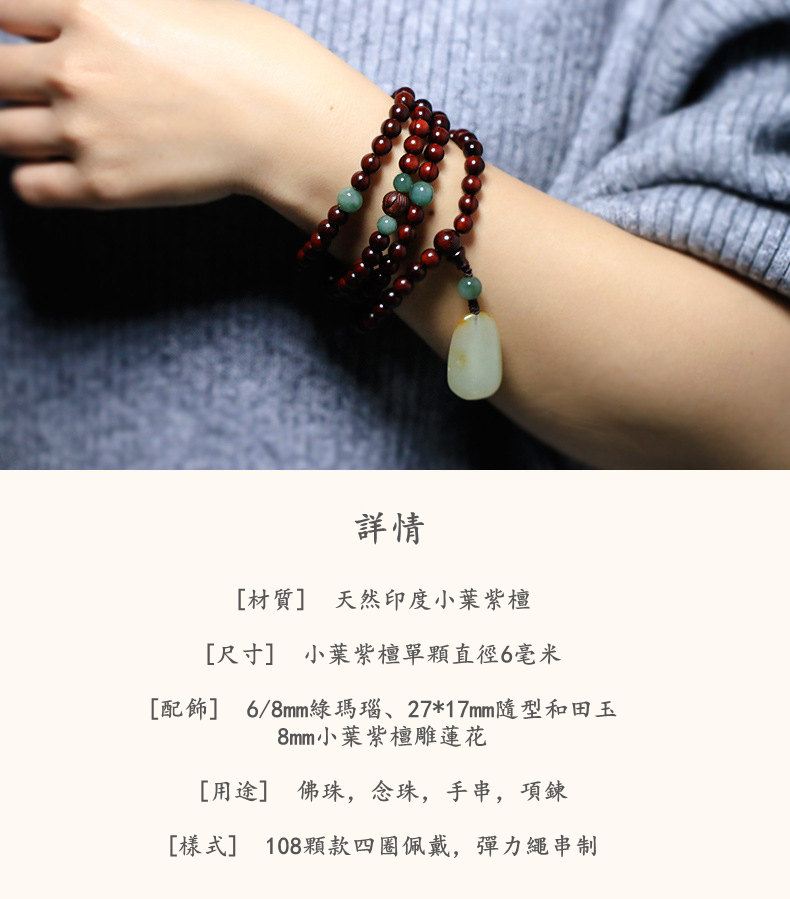 收藏級108顆天然印度小葉紫檀念珠佛珠手串項鍊 | 搭配天然和田玉吊墜 | 收藏級天然小葉紫檀配綠瑪瑙和田玉吊墜108顆多圈佛珠念珠手串