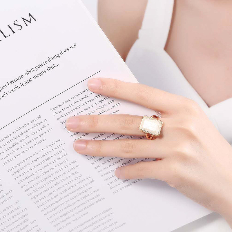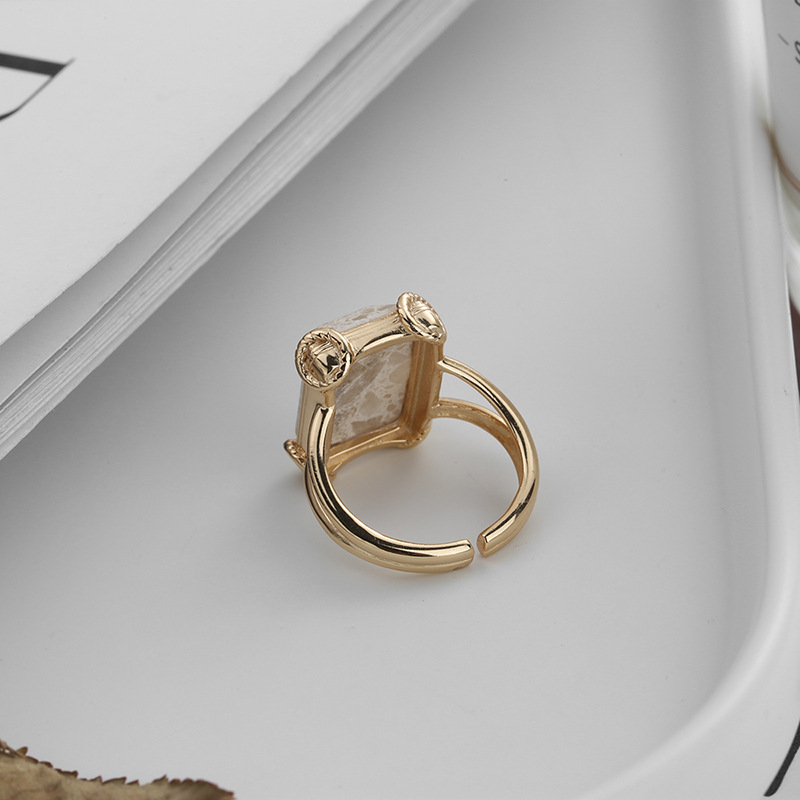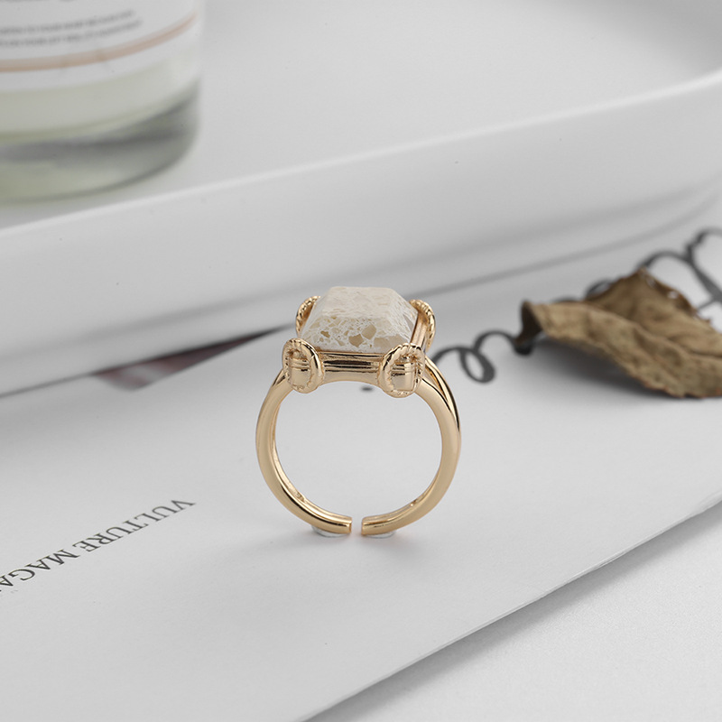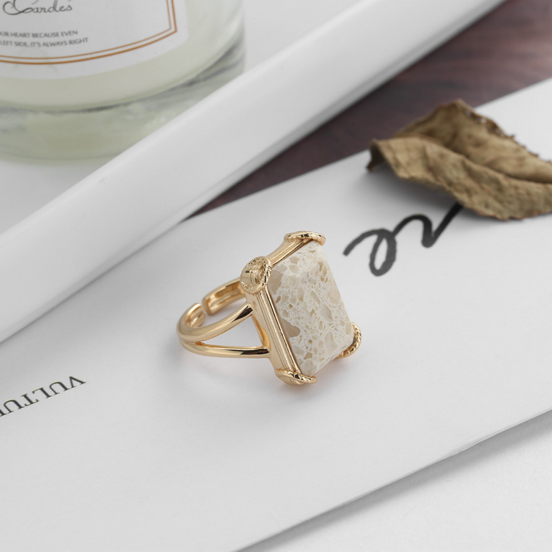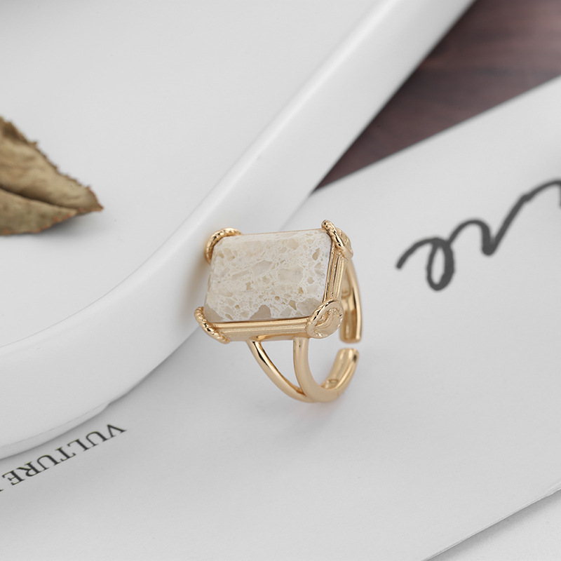 S925純銀鍍金法式文藝石紋鑲嵌原石戒指 (香檳金 開口可調節)