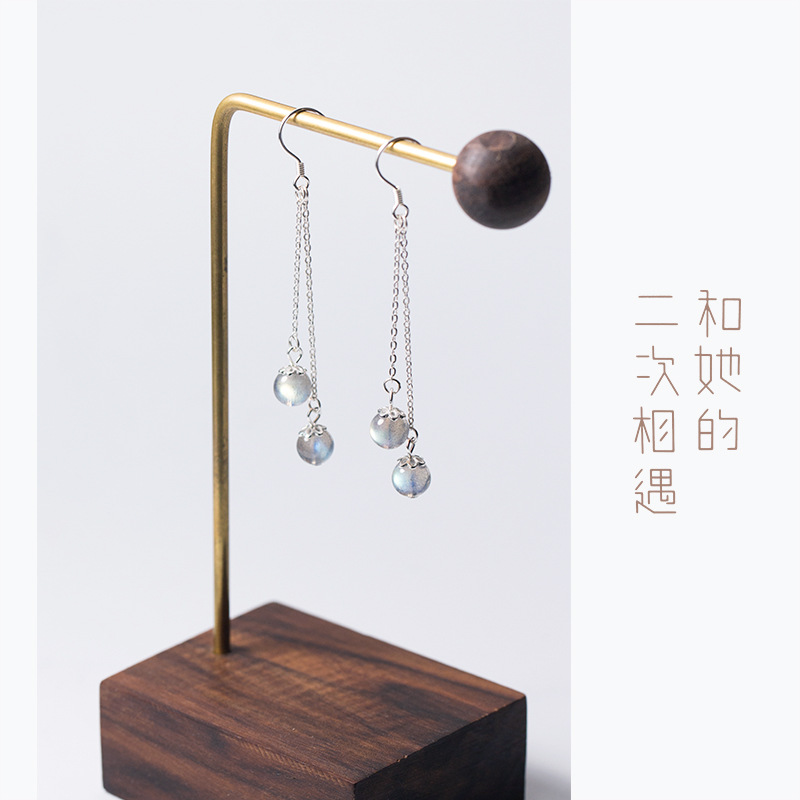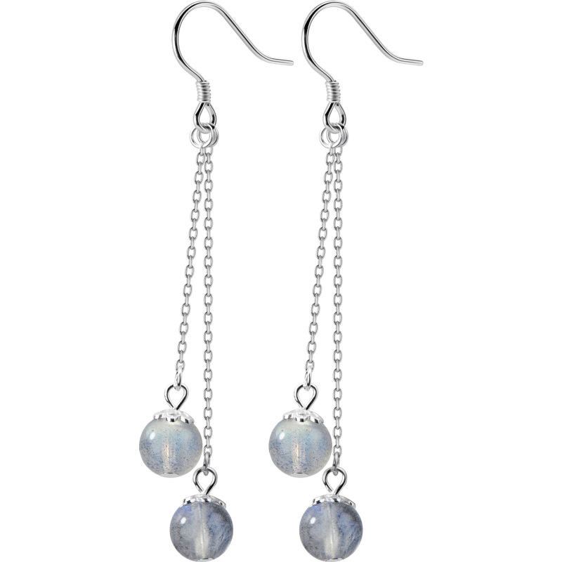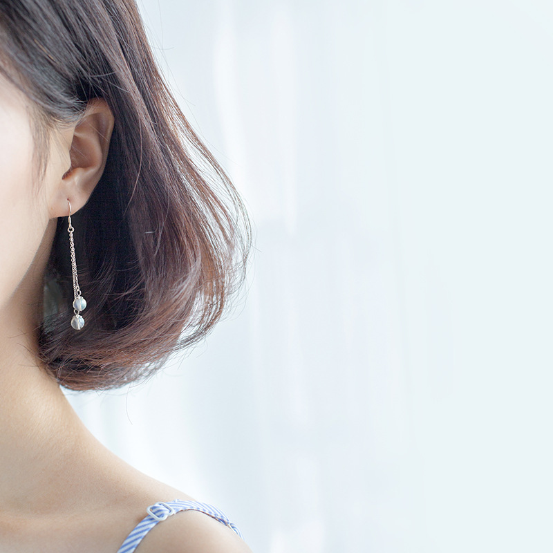 【名媛雙珠耳環】【斯里蘭卡月光石】【925純銀】原創手作名媛氣質月光石純銀耳環一對