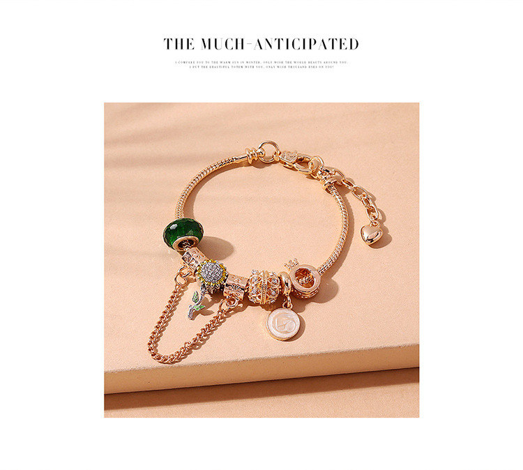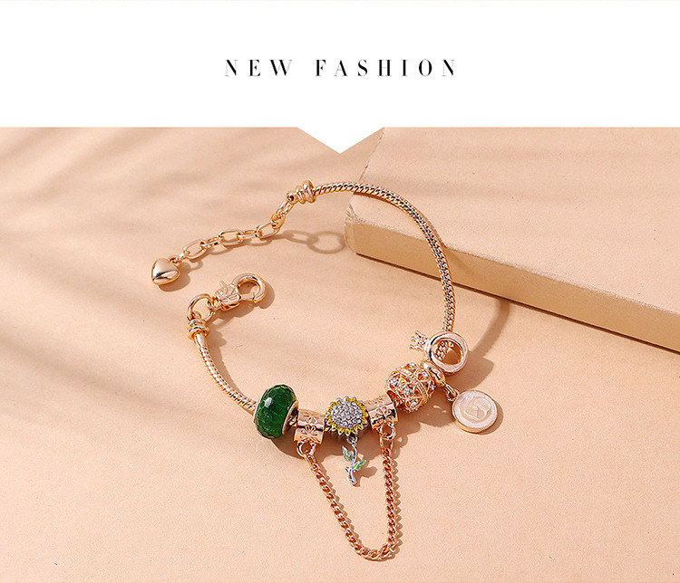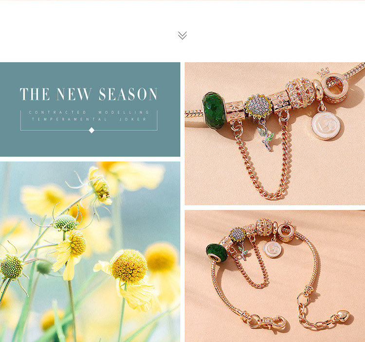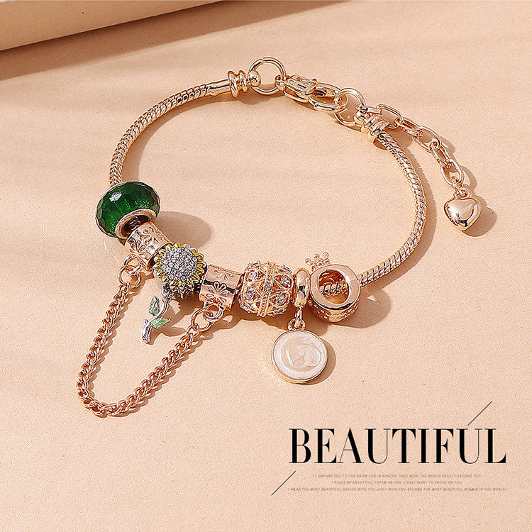 皇冠向日葵太陽花元素翡冷綠燈籠珠輕奢復古手工滴膠工藝琉璃串珠可調節女串珠手鍊