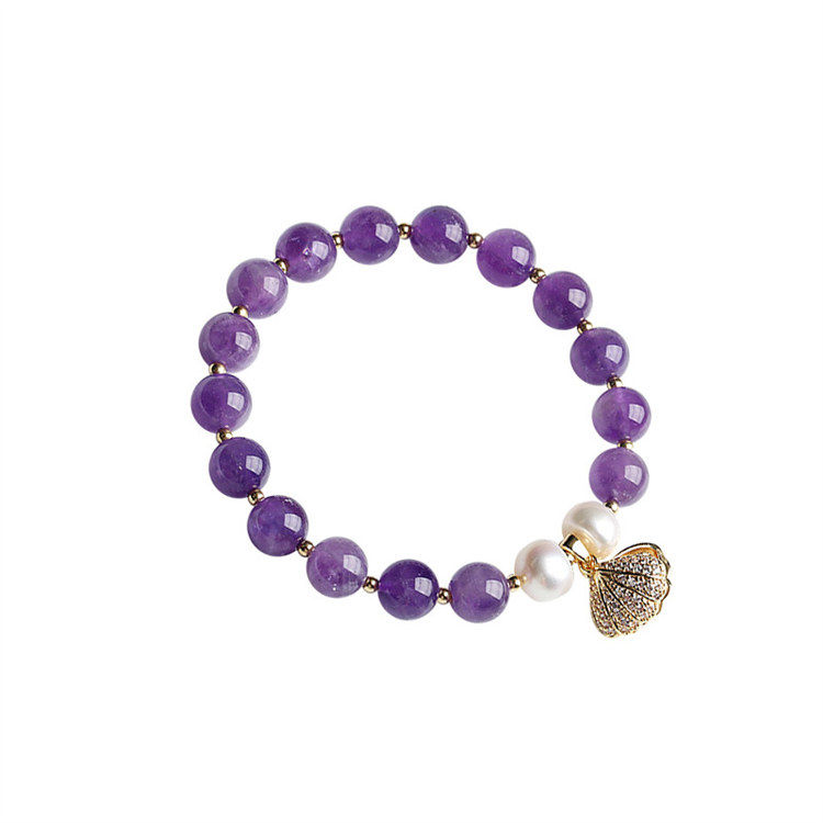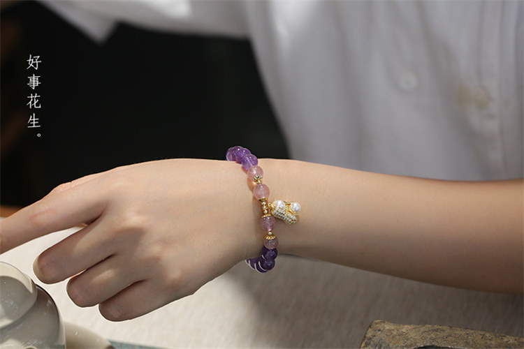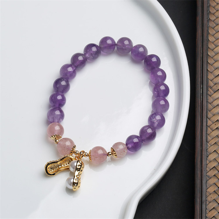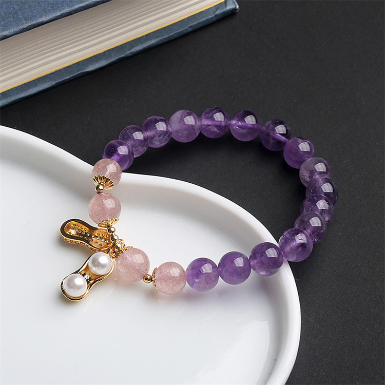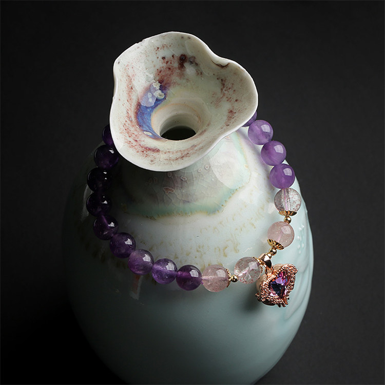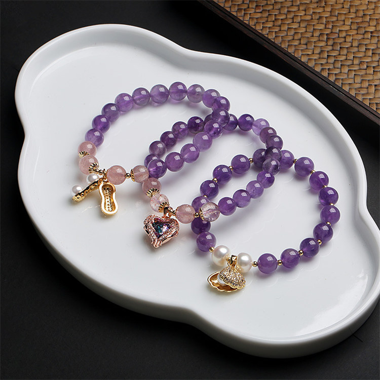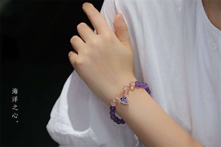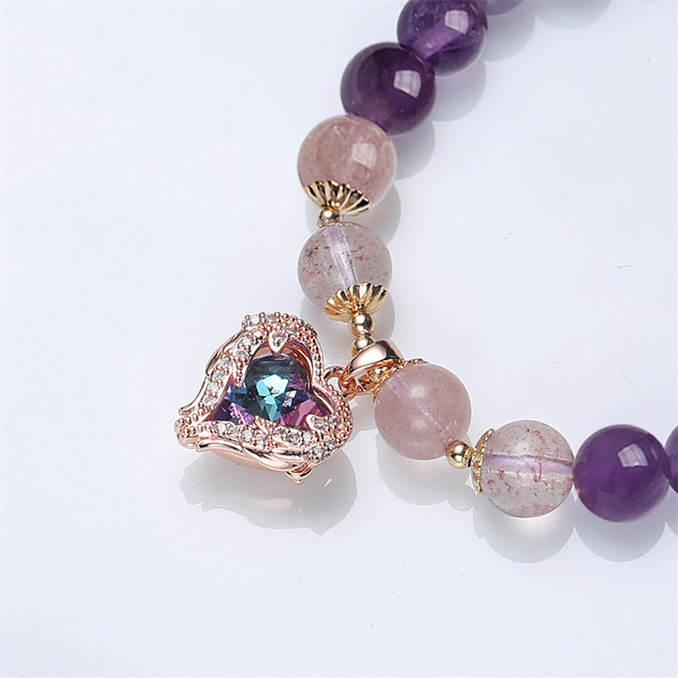 海洋之心 | 天然冰透紫水晶 | 14K真金電鍍 | 旺事業促學業天然紫水晶配草莓晶海洋之心女水晶手鍊