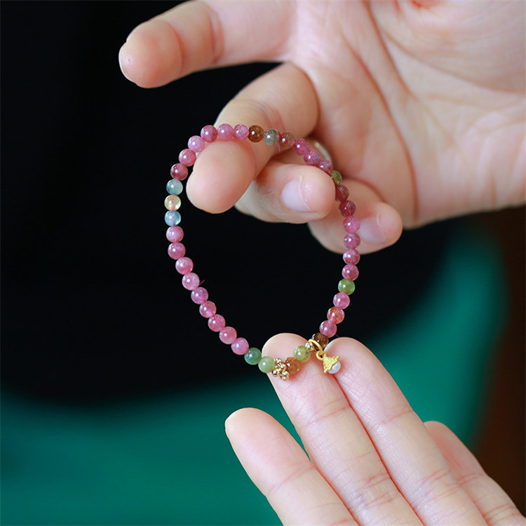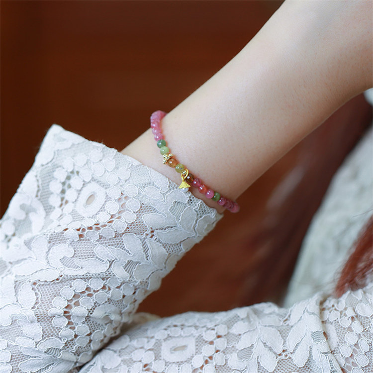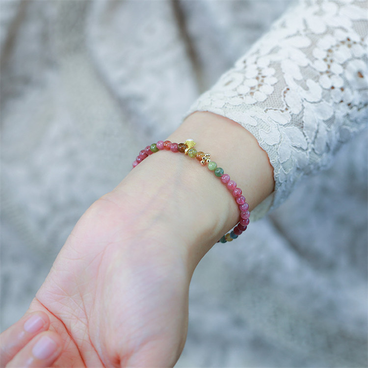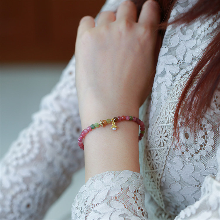 假裝是一條彩繩 | 天然彩虹糖果碧璽 | 超顯氣質天然收藏級彩虹碧璽14K真金電鍍珍珠配飾女水晶碧璽手鍊