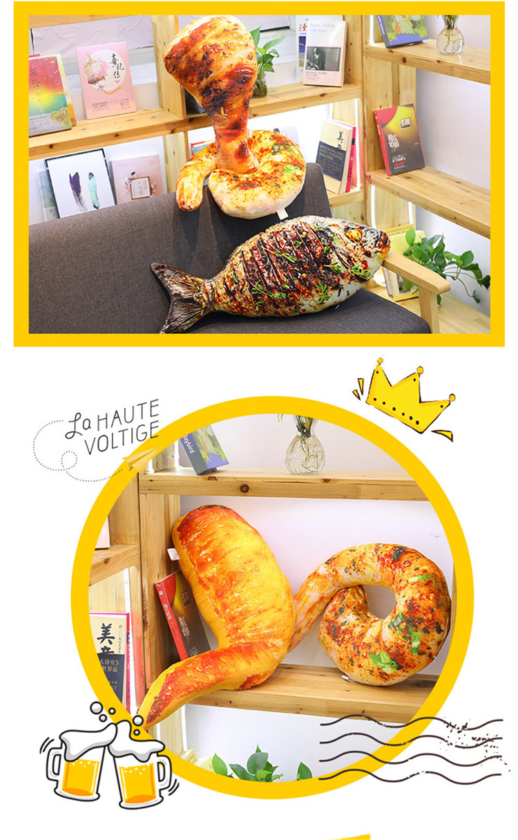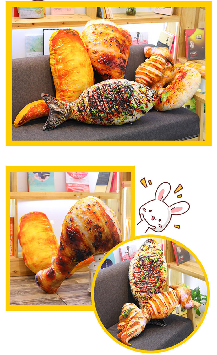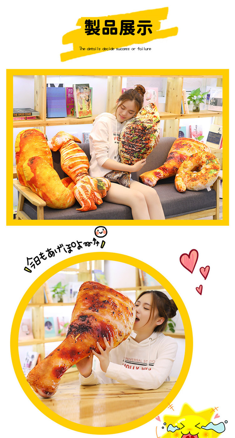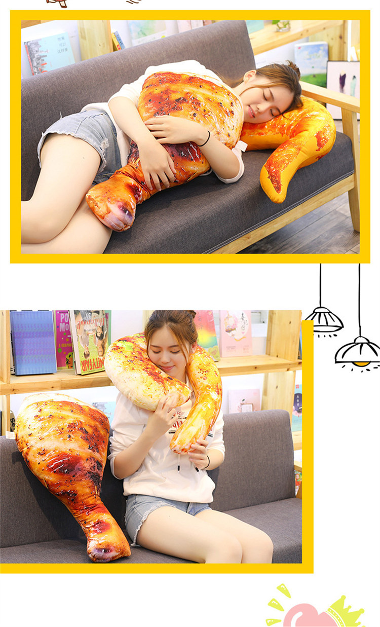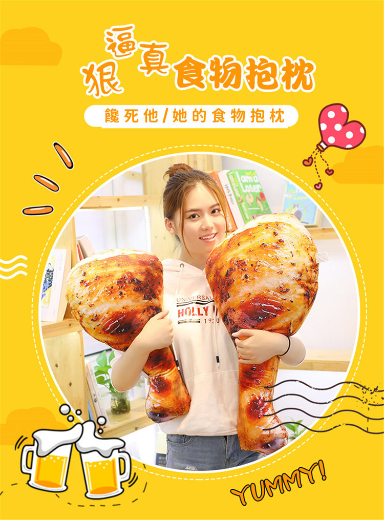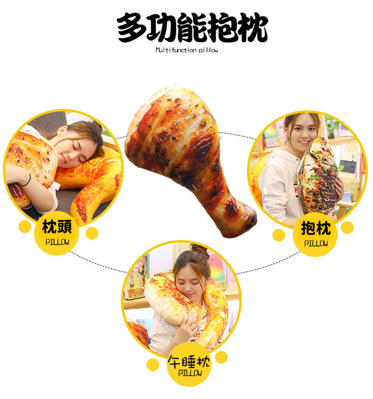 超巨大食物抱枕 | 高檔PP棉填充不塌陷 | 親膚水晶棉面料 | 環保數位印花 | 超搞笑送男女生禮物多功能巨大食物雞腿雞翅魷魚大蝦抱枕