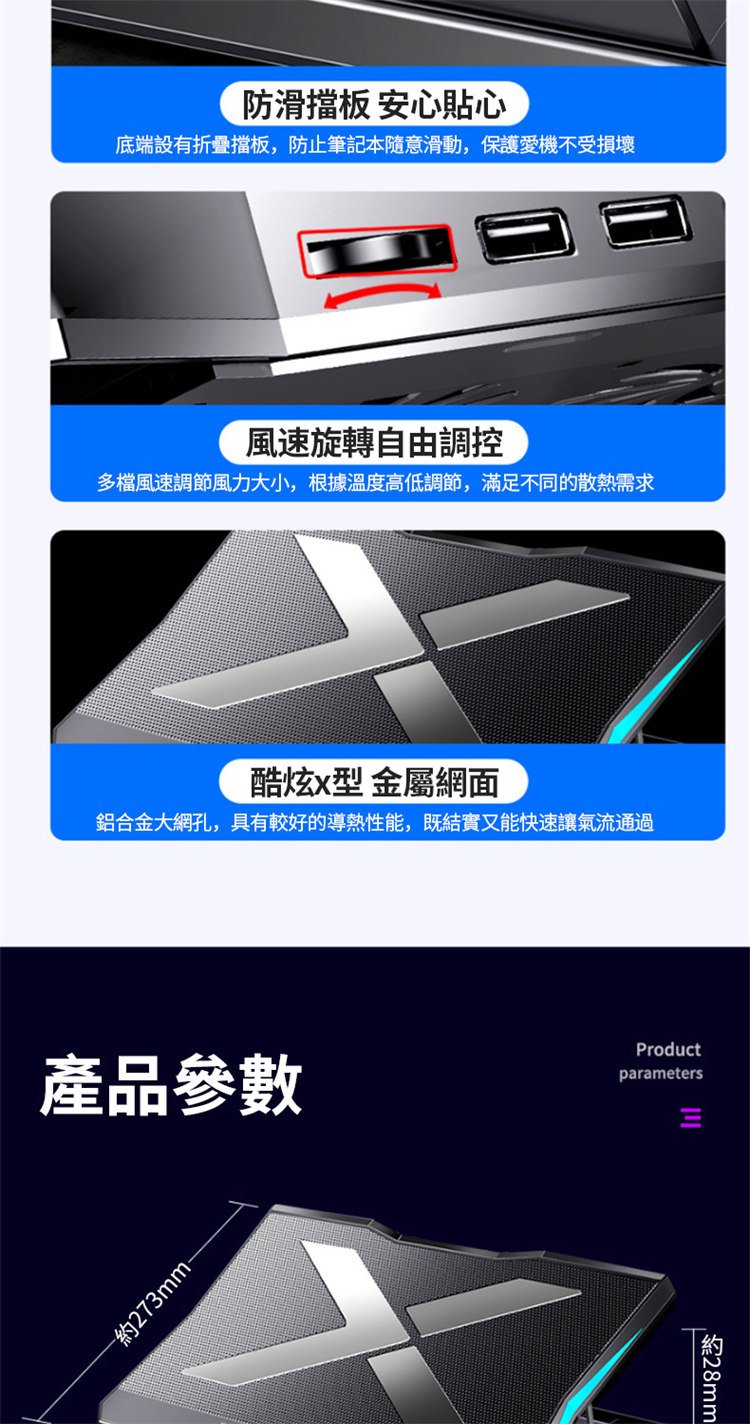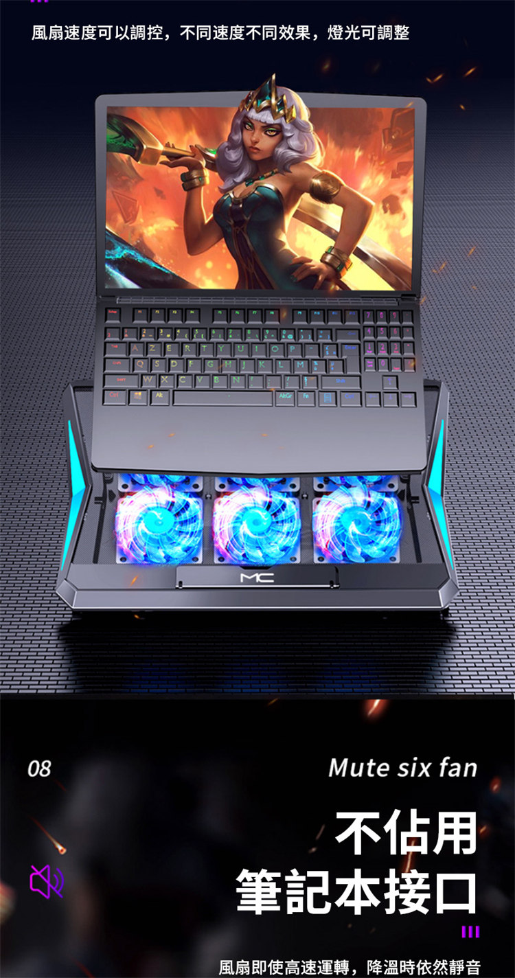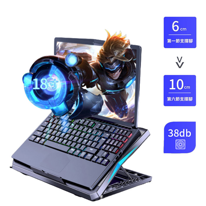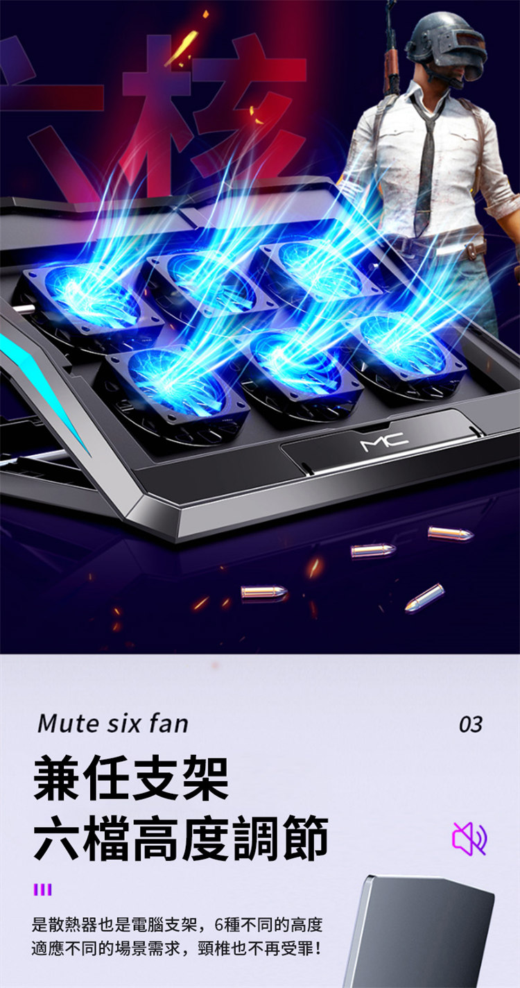 全功能旗艦級筆電散熱器 | 六核颶風散熱 | 六檔高度可調 | 靜音無感降溫 | 兼容大呎寸筆電 | 超強承重 | 旗艦級筆記型電腦風冷散熱架散熱器