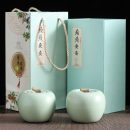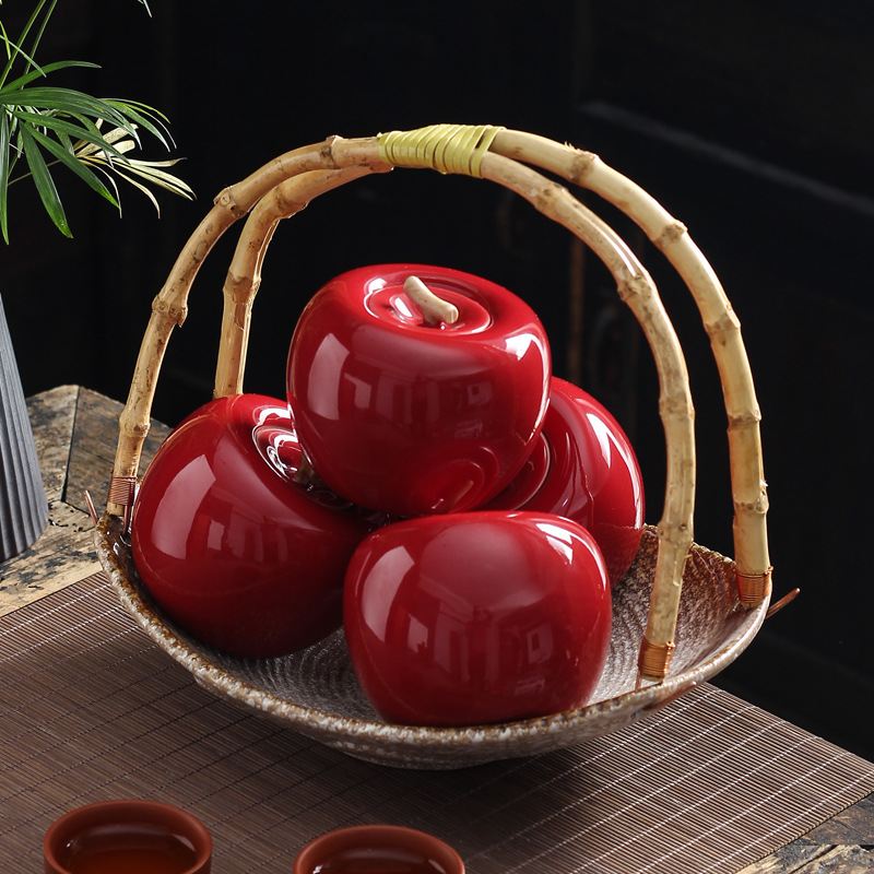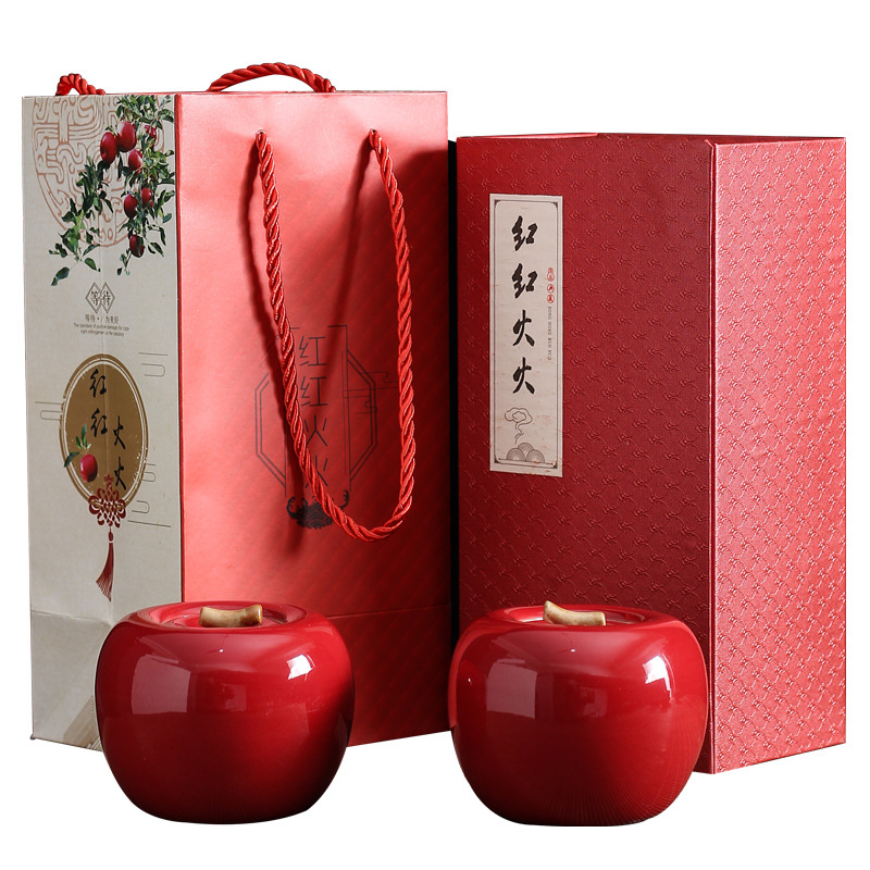 【紅紅火火】小號便攜日式上釉陶瓷蘋果密封茶葉罐雙罐禮盒套組