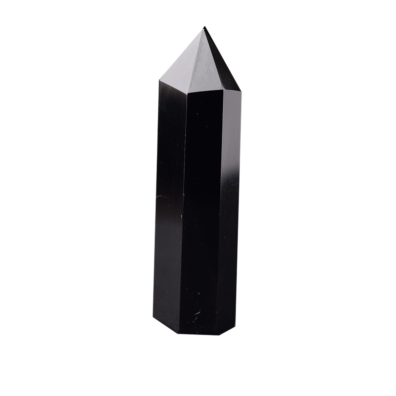 天然墨西哥7A級原礦烏金黑曜石六棱單尖水晶柱風水招財擺件