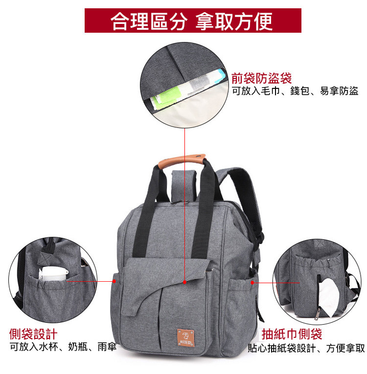 【舒適減壓媽咪包】【安全防盜】實用多功能舒壓防盜真皮帆布媽咪後背包