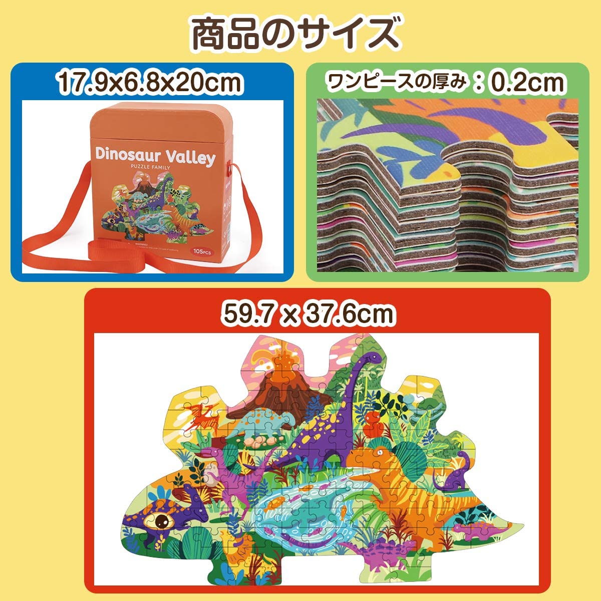 【105片恐龍造型拼圖】【全環保材質】【光滑不傷手】【送收納包】日本熱銷超可愛趣味105片恐龍造型侏羅紀主題成人兒童拼圖