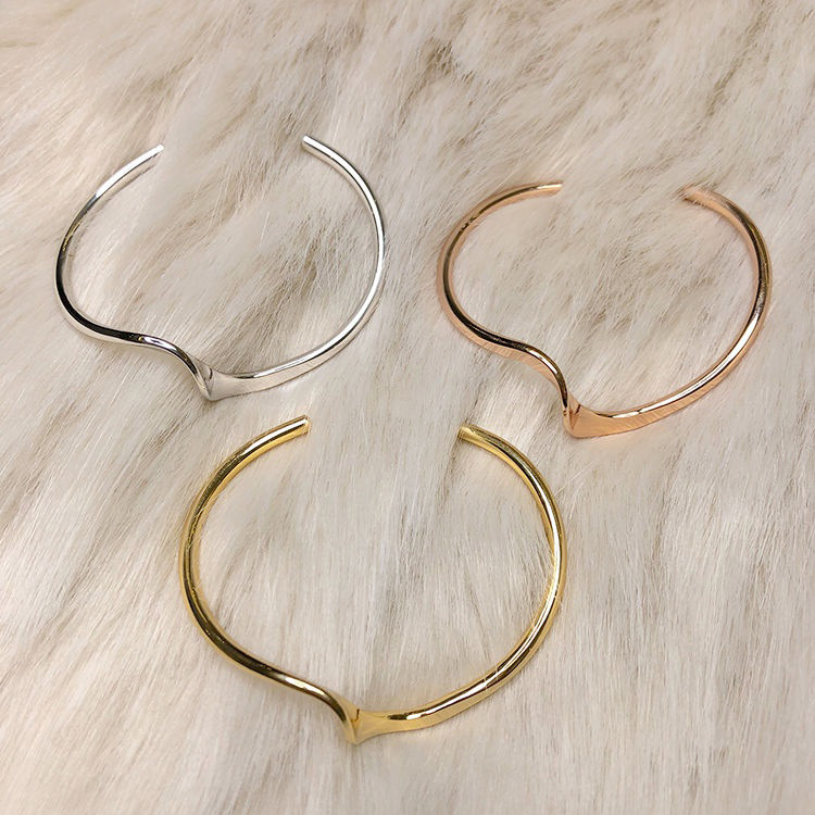 冷淡風波紋手鐲日韓小眾氣質百搭女設計感波浪開口手飾品簡約手環
