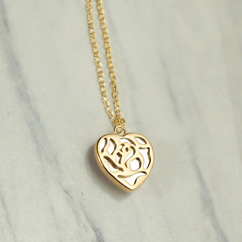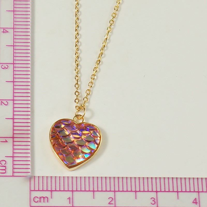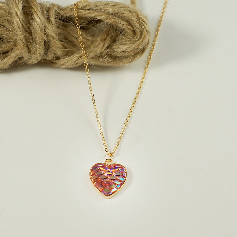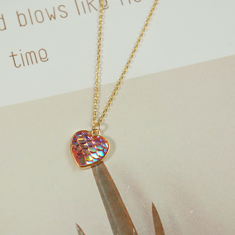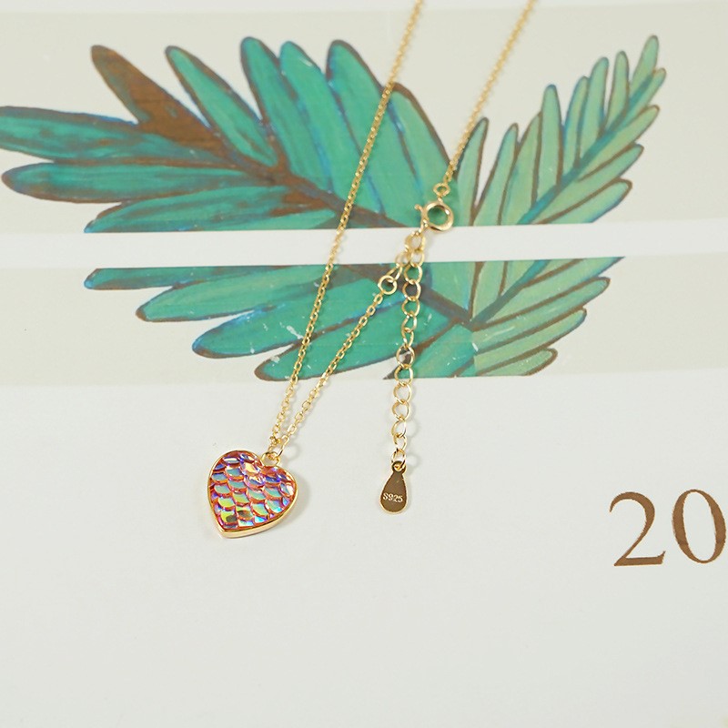 【粉色人魚愛心】【925純銀鍍金】原創設計甜美925純銀鍍香檳金人魚鱗片愛心鎖骨鍊項鍊