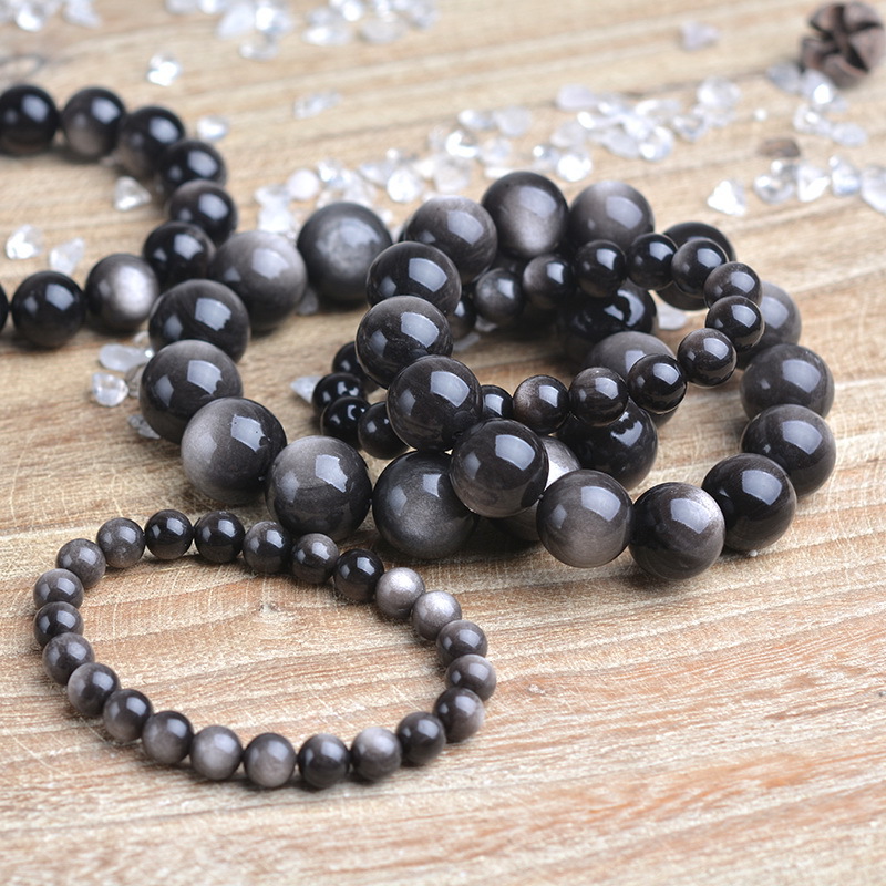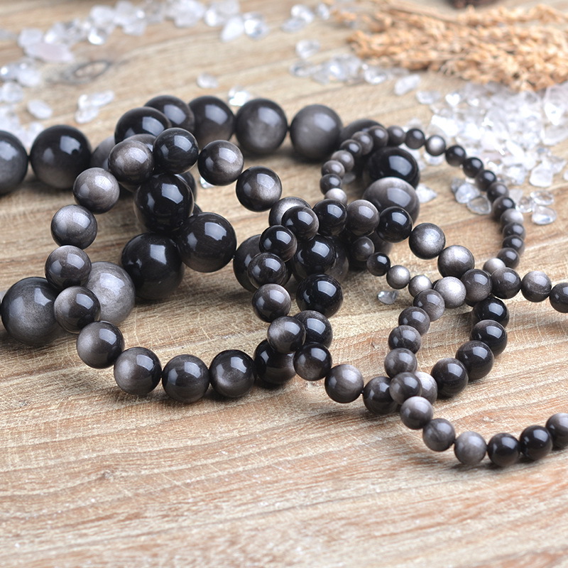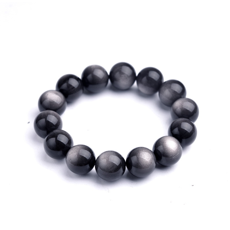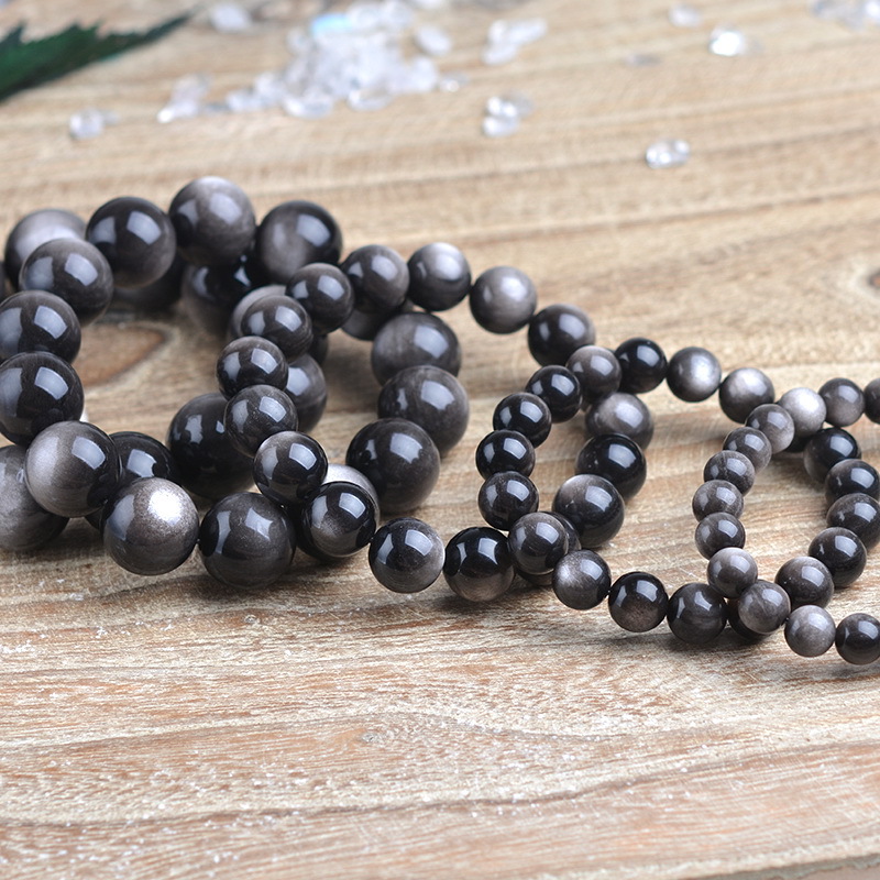 【超稀有銀曜石手鍊】【雙銀月眼黑曜石】【招財開運】溫柔守護天然6A收藏級稀有雙銀月眼銀曜石黑曜石素珠手鍊