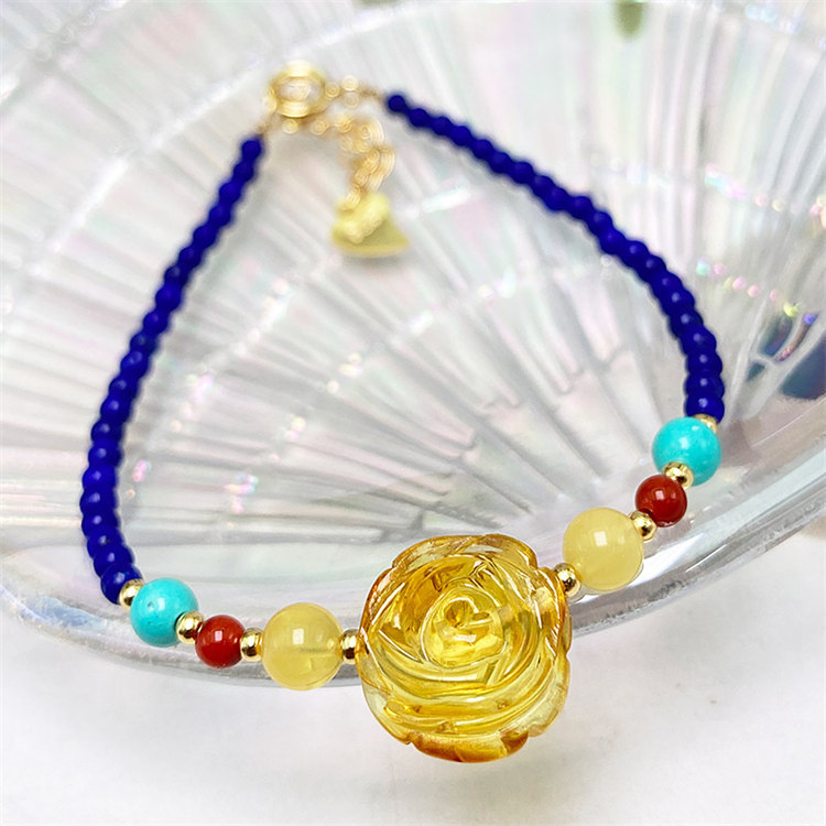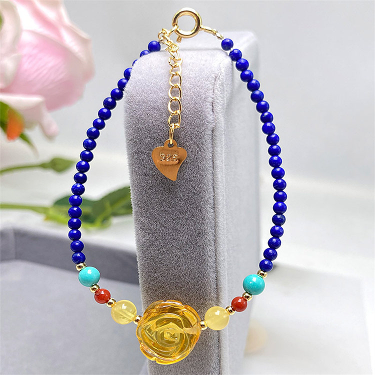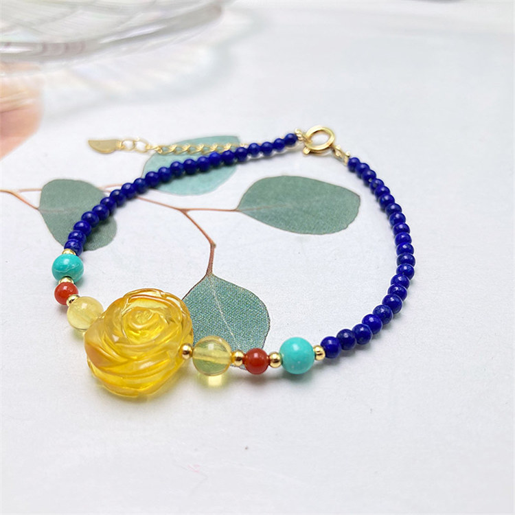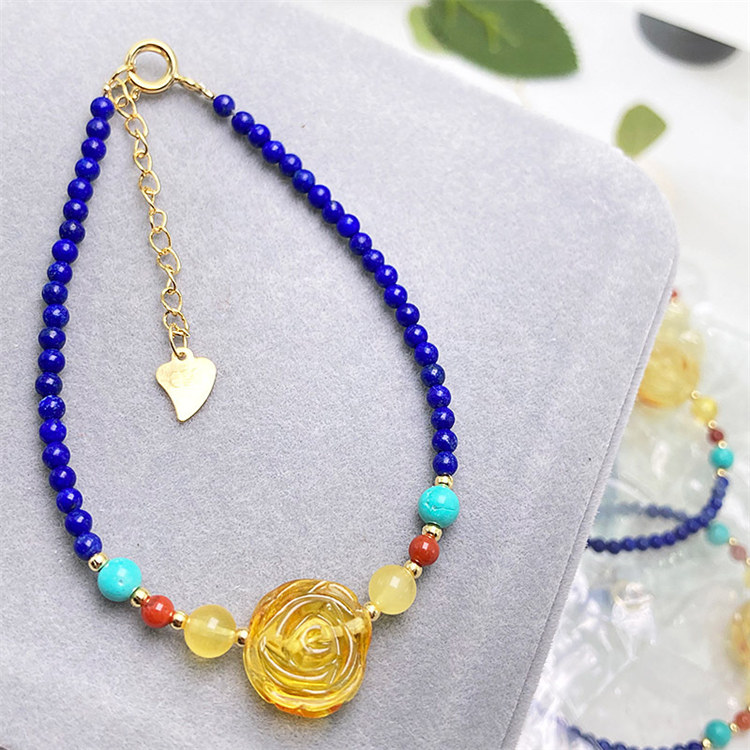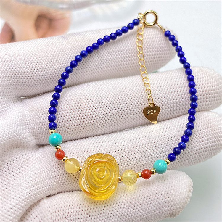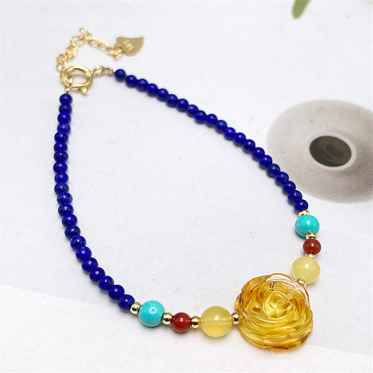 設計師款天然蜜蠟牡丹配天然帝王青金石手鍊