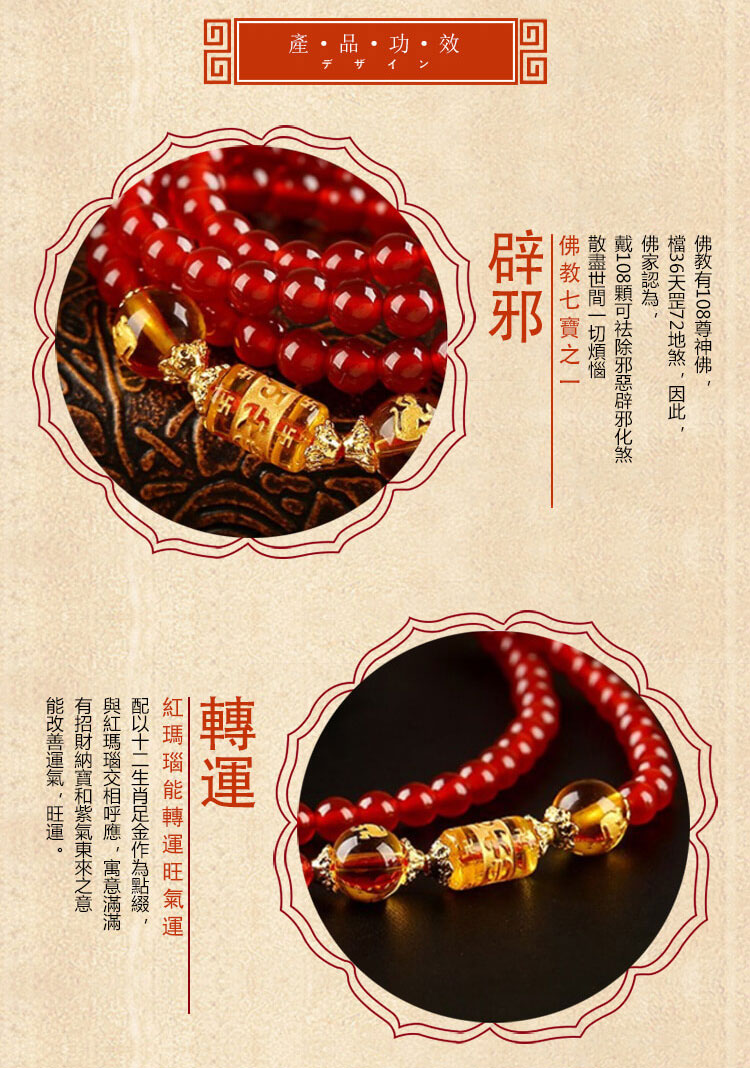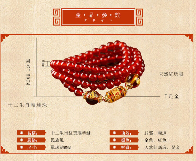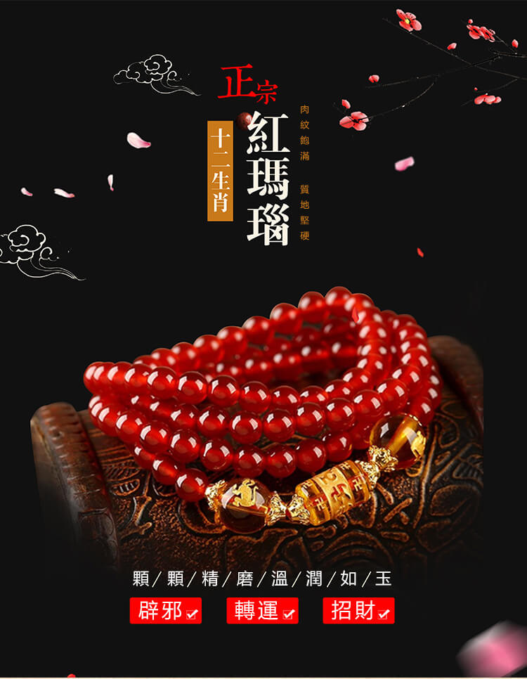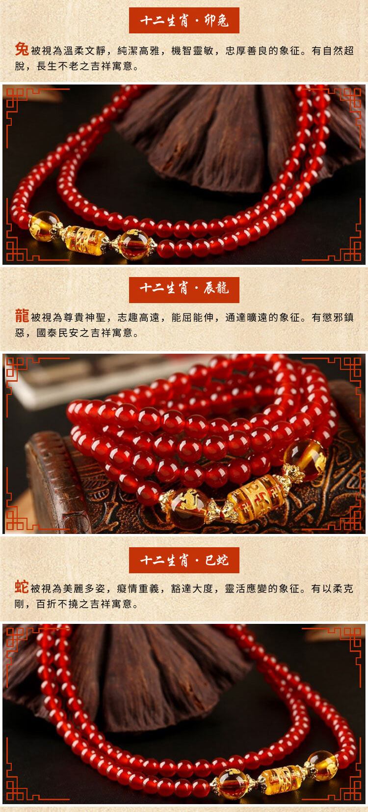【108顆紅瑪瑙多圈】【十二生肖守護】開運招財5A級紅瑪瑙十二生肖本命守護多圈手鍊