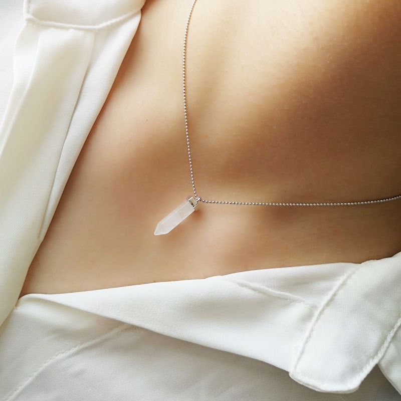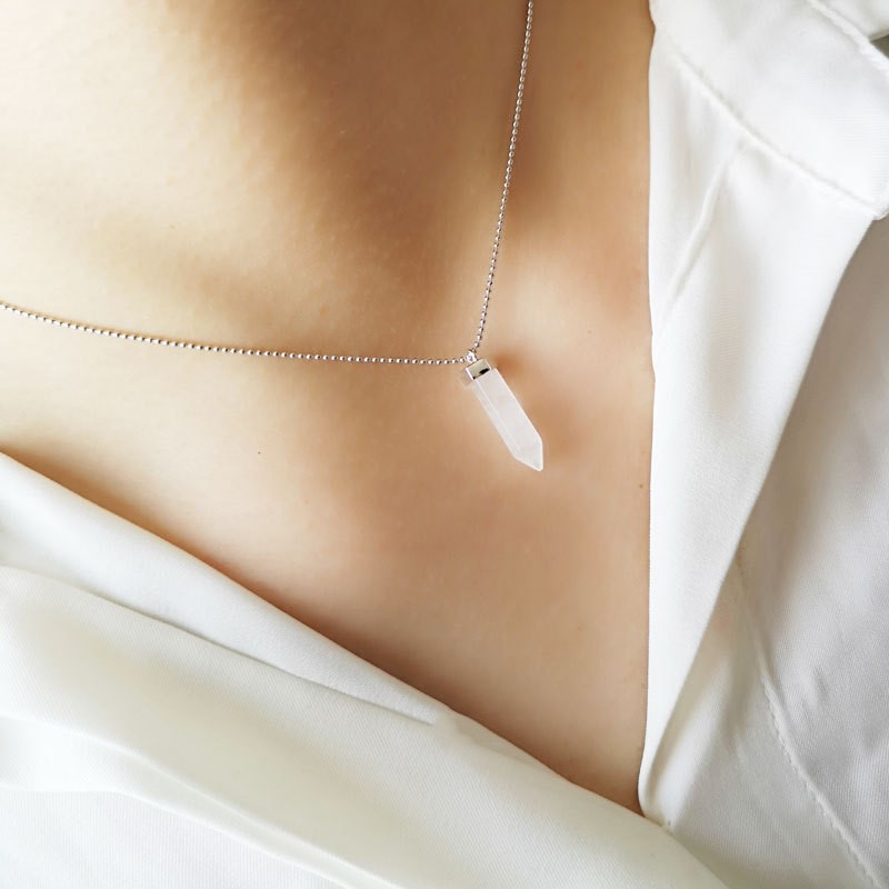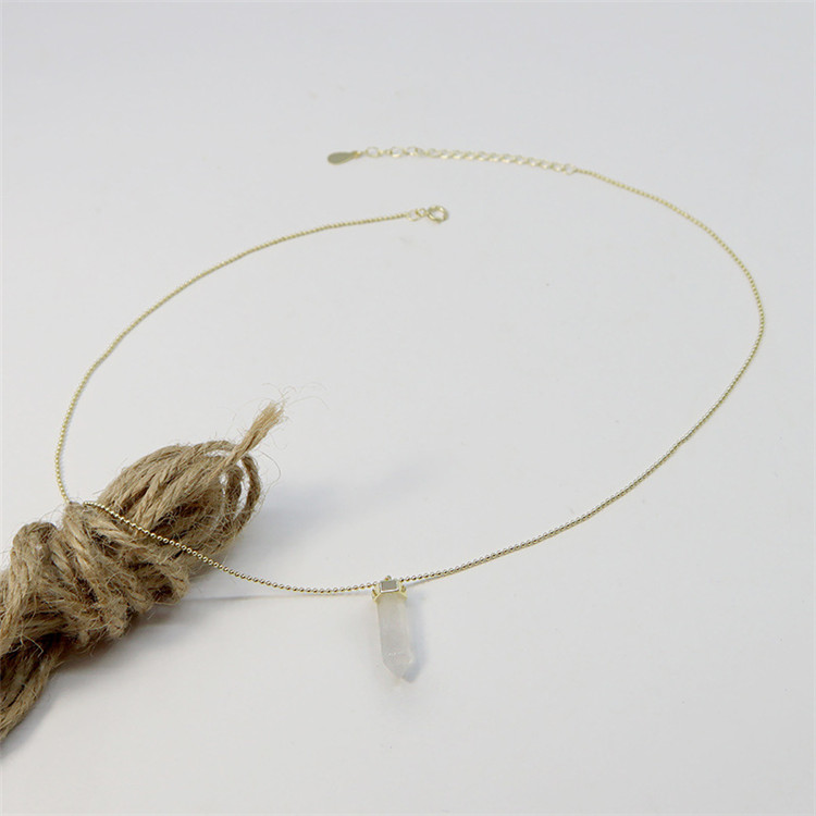 【天然能量六角白水晶柱】【925純銀鍍金】原創設計復古冷淡六角白水晶柱925純銀鍍金鎖骨鍊項鍊