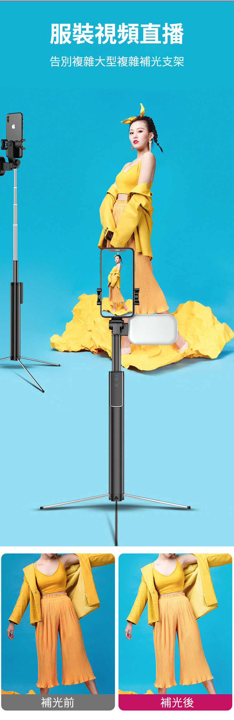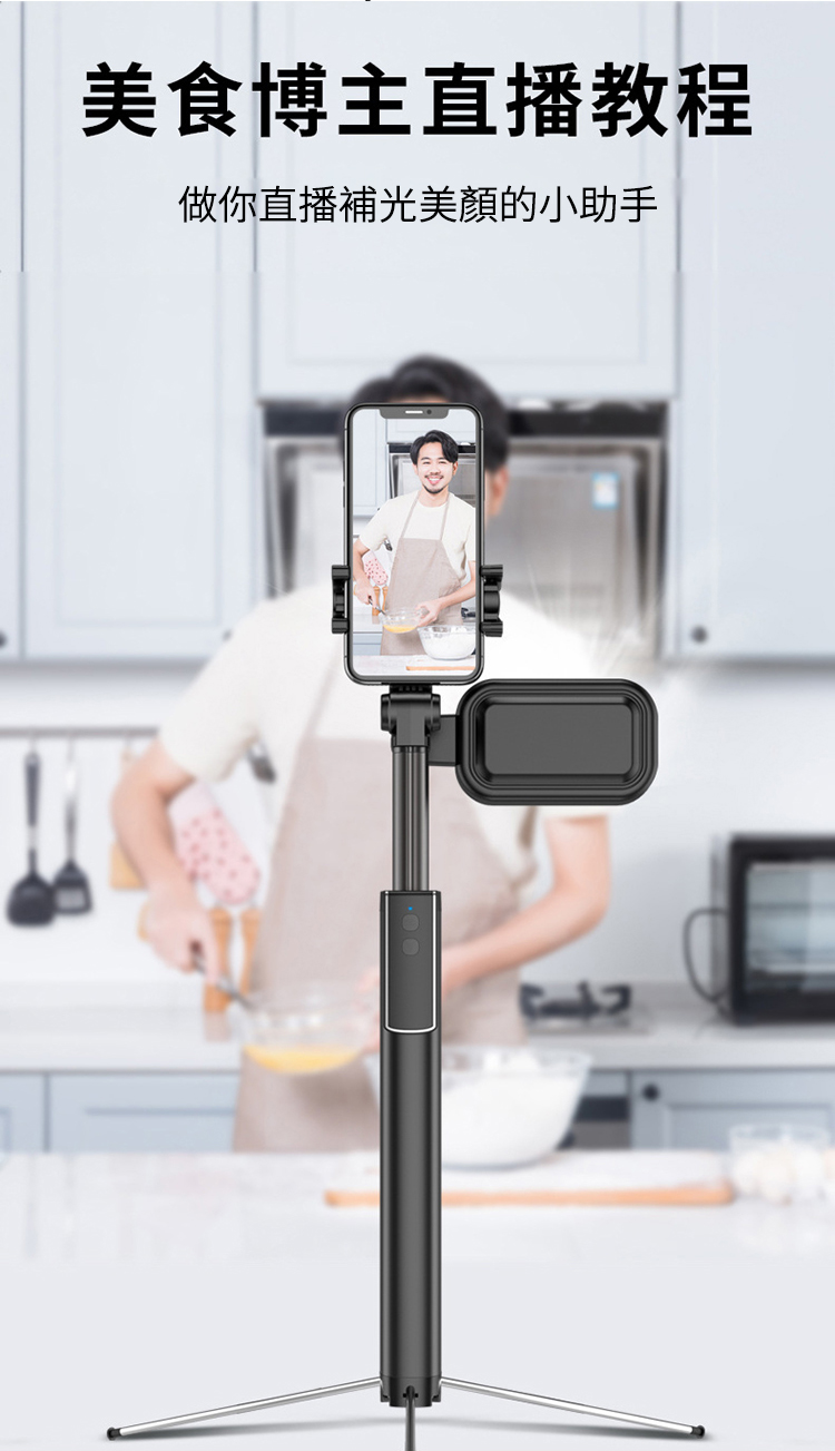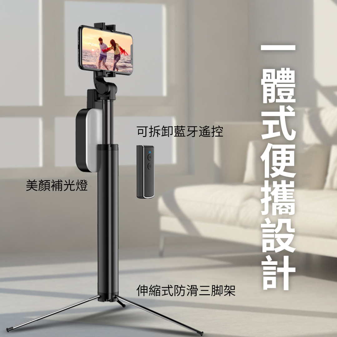 【美顏補光藍牙自拍棒】【影棚級美顏燈】【六段超級伸縮】超實用便攜一體式專業影棚級補光燈手機直播支架無線藍芽自拍棒