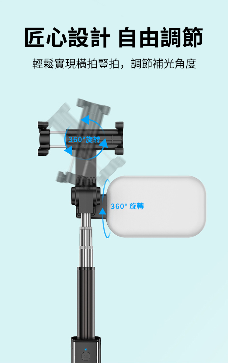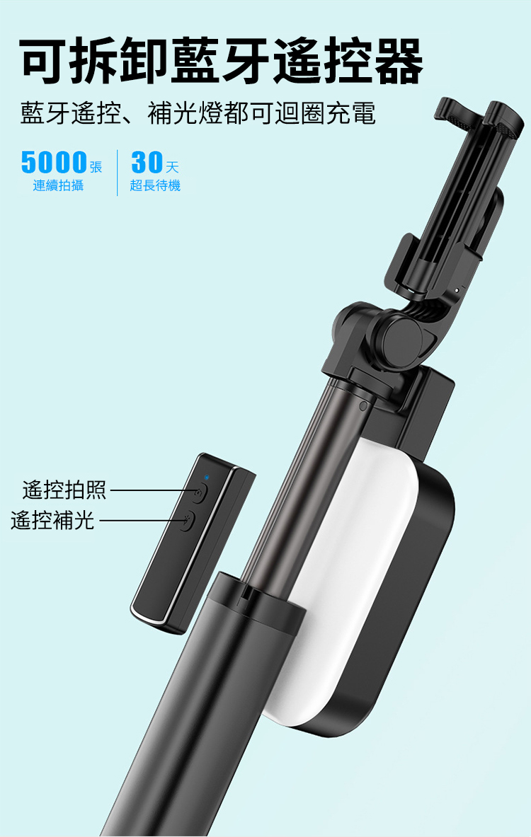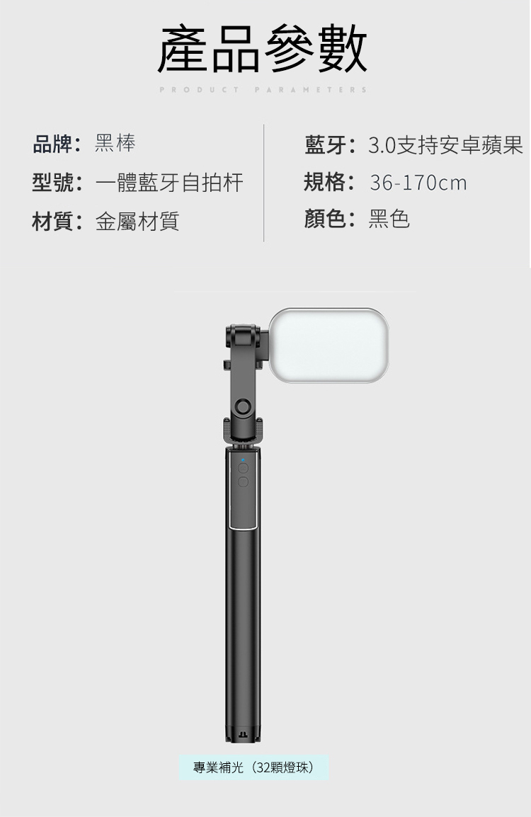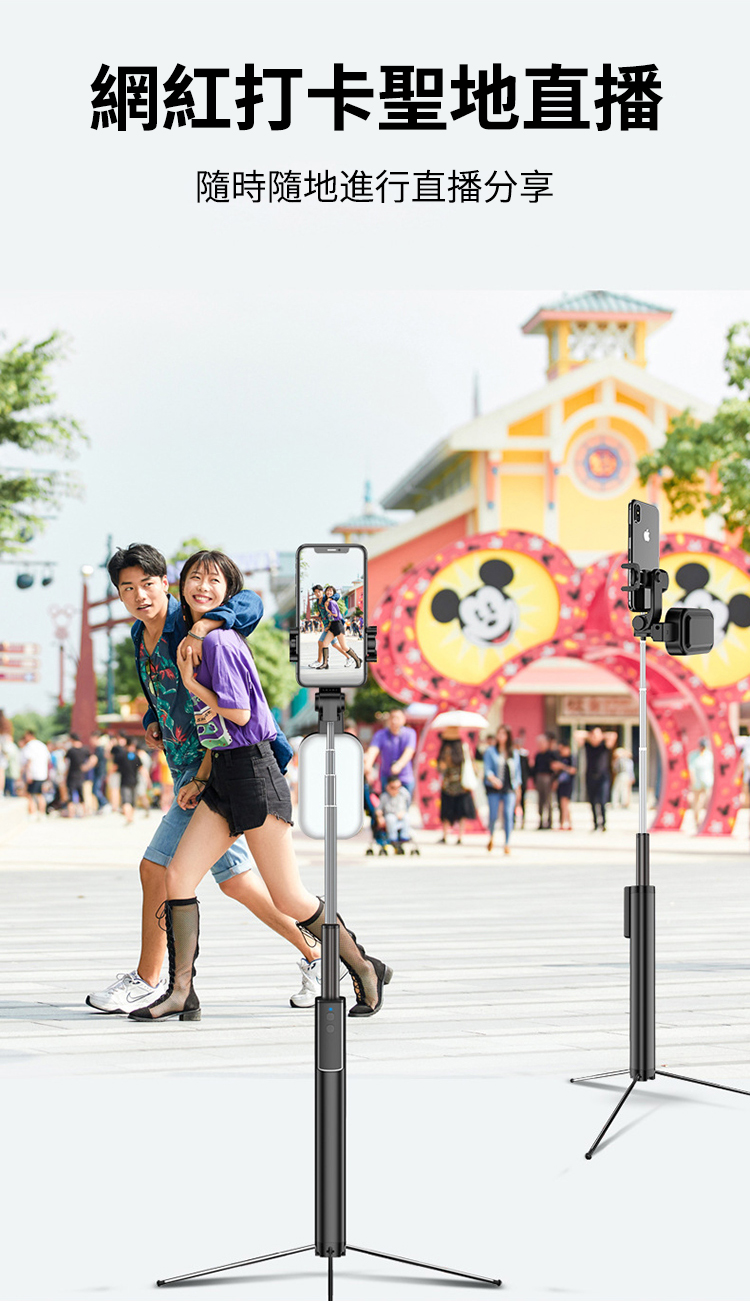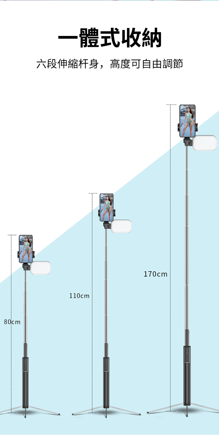 【美顏補光藍牙自拍棒】【影棚級美顏燈】【六段超級伸縮】超實用便攜一體式專業影棚級補光燈手機直播支架無線藍芽自拍棒
