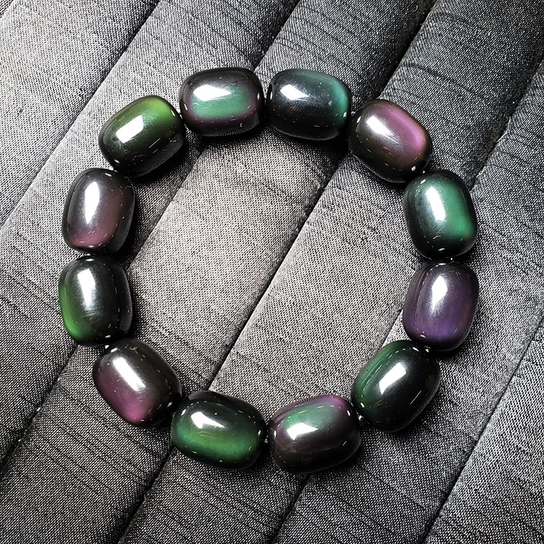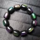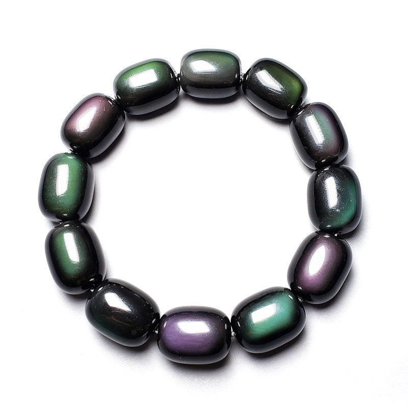 【彩虹貓眼黑曜石】【精工拋光】強招財辟邪天然7A級彩虹貓眼黑曜石桶珠手鍊手串 (單顆13*18mm)