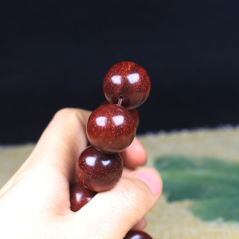 【讚比亞金星血檀】【時來運轉配飾】天然讚比亞金星血檀搭配同料時來運轉配飾單圈佛珠手串