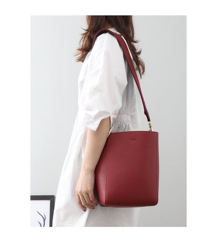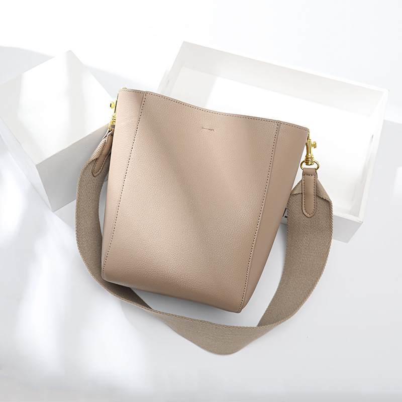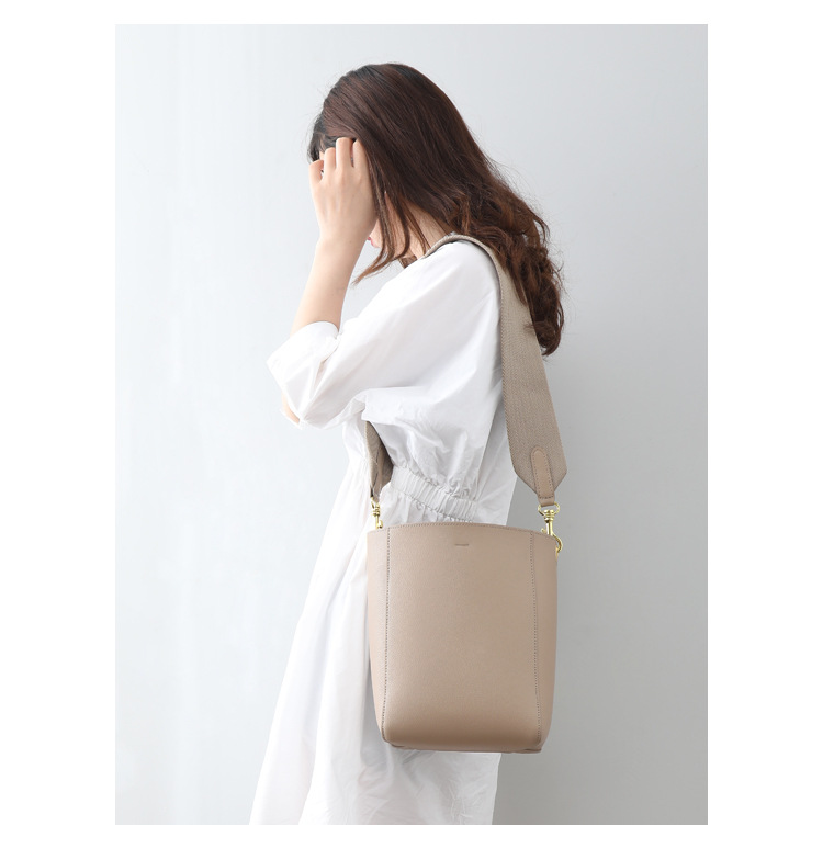 【小牛皮雙肩帶水桶包】頂級做工超顯氣質莫蘭迪色真皮sangle水桶包單肩斜背側背包