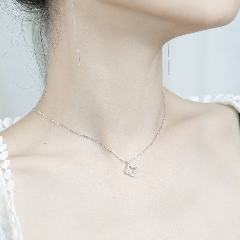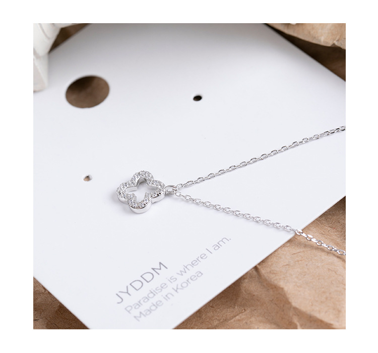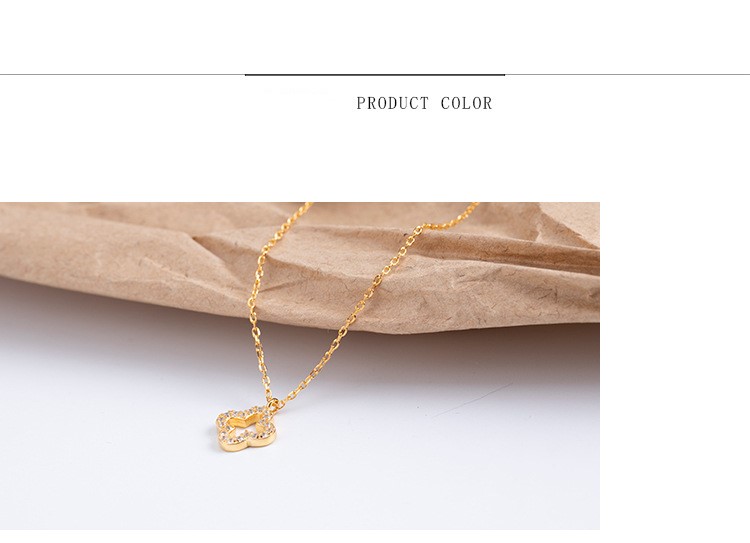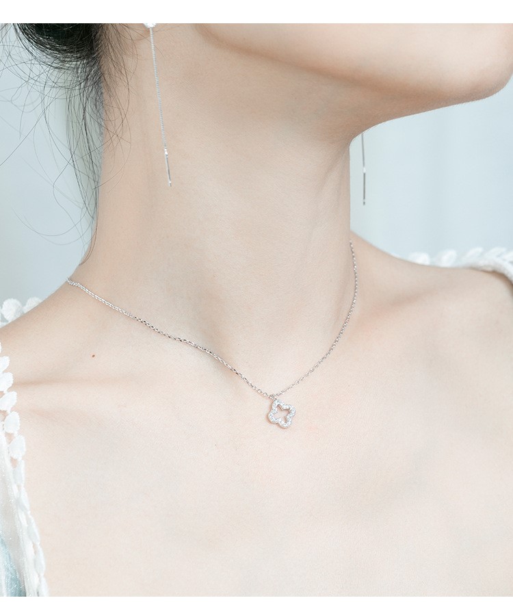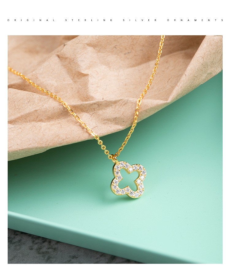 【鏤空鑲鑽四葉草】【925純銀鍍金】原創手作女神氣質925純銀鍍金四葉草吊墜鎖骨鍊項鍊